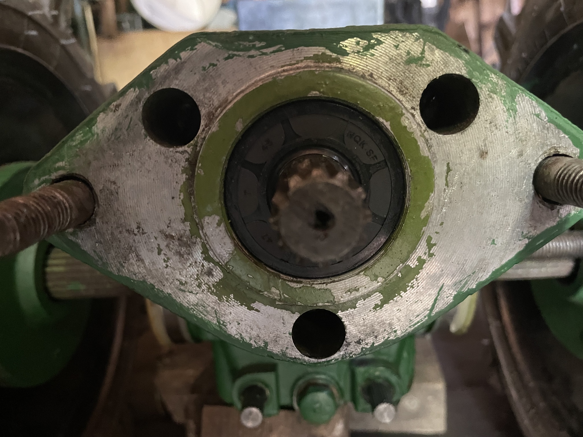Вы думаете помогли мне новые резиновые кольца? Ну конечно же нет, точнее 50/50, на длинном валу всё нормально, с нижнего, того самого, который я снимал три раза потекло, потекло знатно/по-царски/по-королевски. Обезжирил торец текущего вала и обмазал герметиком, лишнее вытер, теперь не течет ( герметик вообще держал как крайний случай и в других местах мотоблока его нигде больше не использовал)