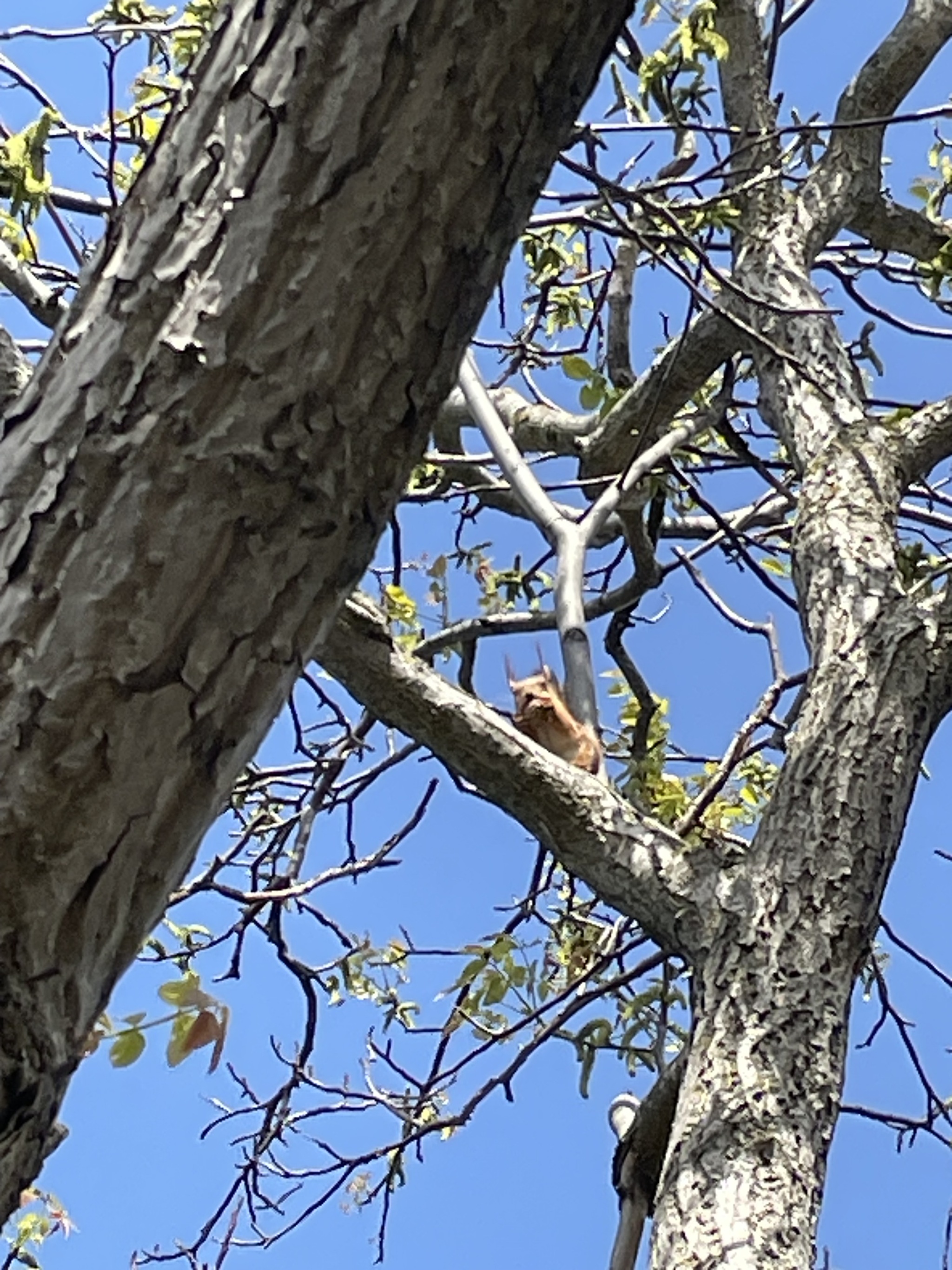 Ещё на дереве лазила белка, искала прошлогодние орехи.