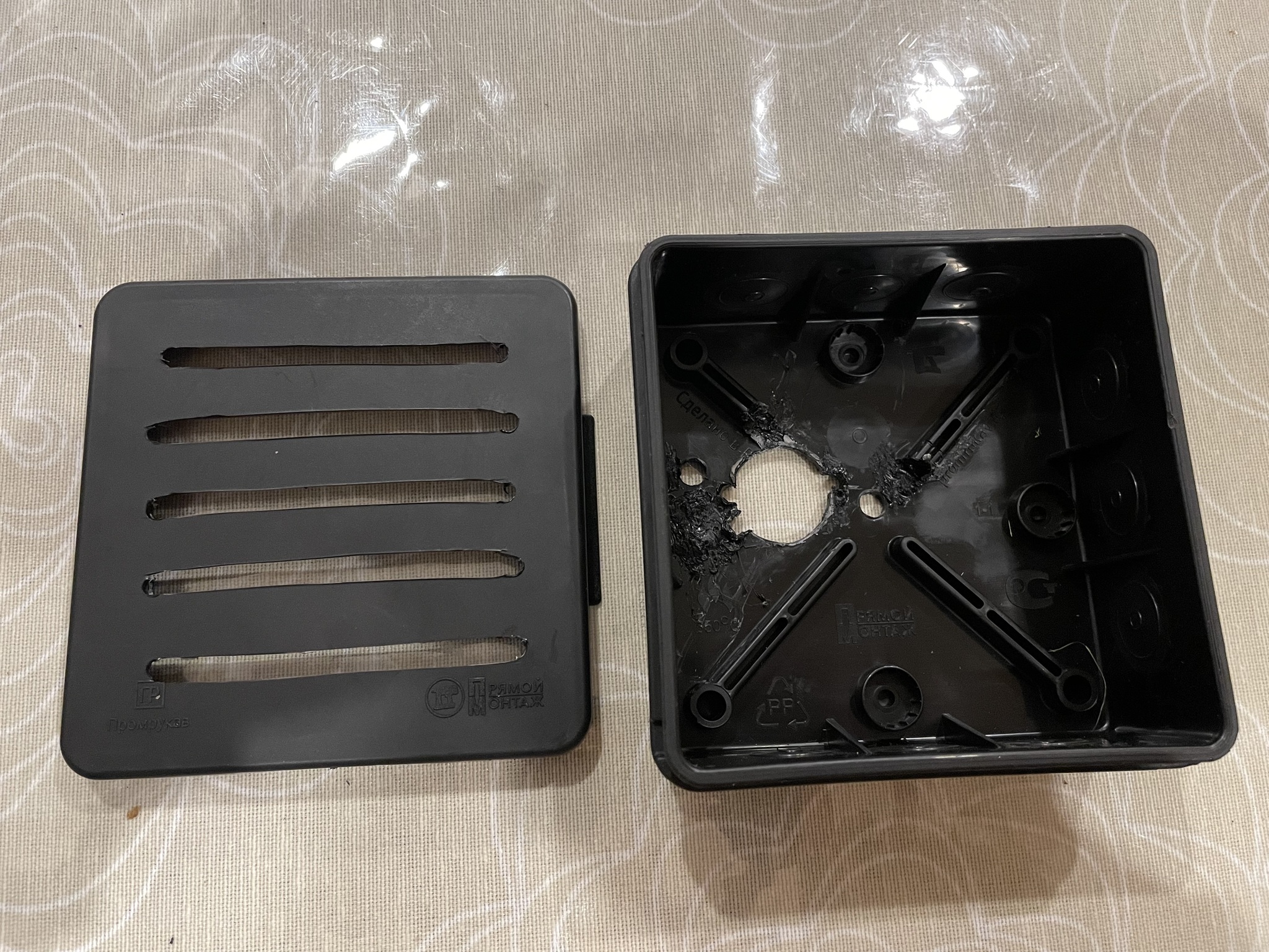 Придумал такую тему, нашел распределительный короб 80х80х40, выглядит строго и фиг поймёшь, что колхоз, хотя я так не считаю.