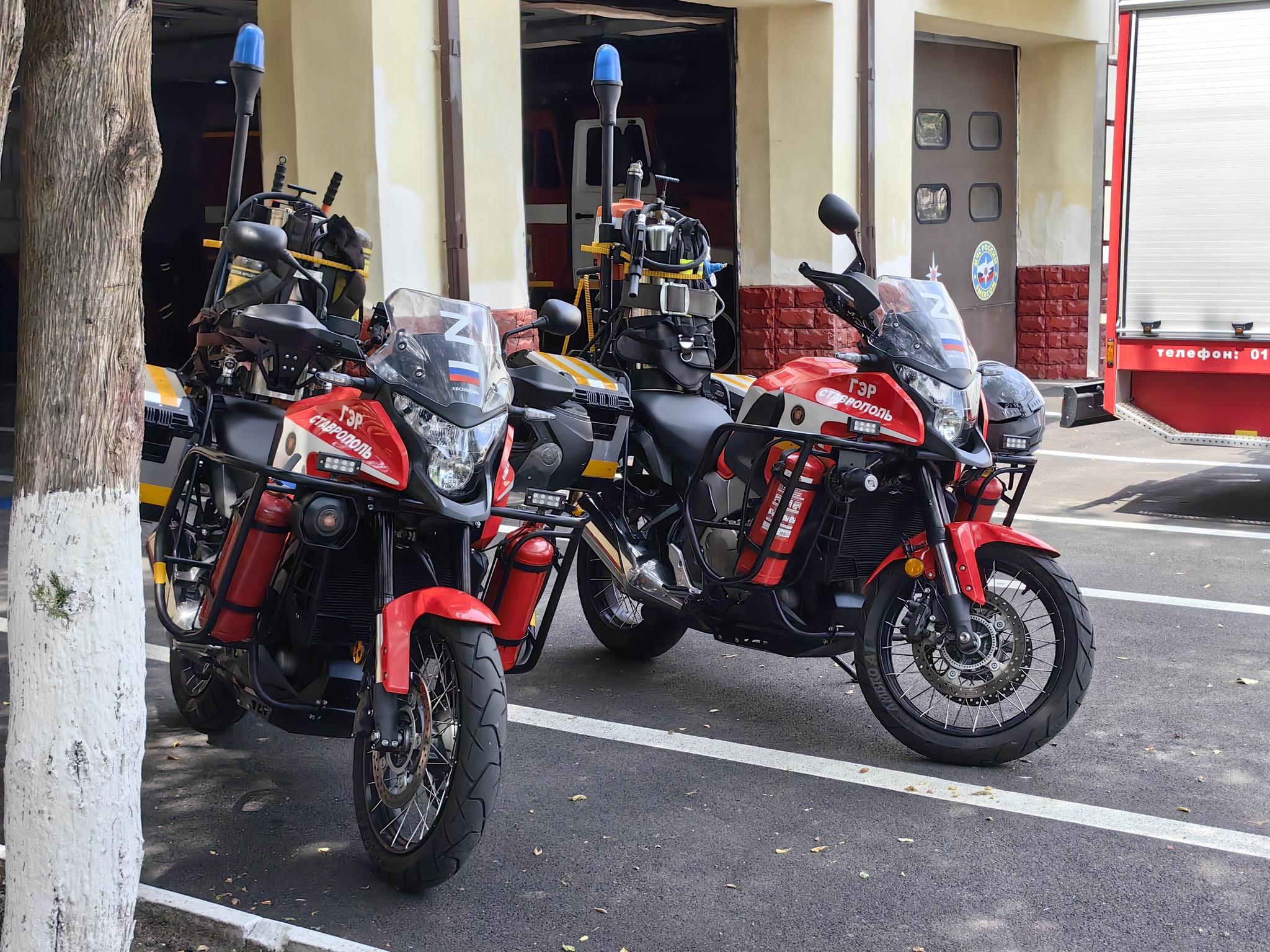 Сегодня впервые увидел в Ставрополе мотоциклы. Сразу скажу, что переехал в город не так давно, может они тут уже не первый год ездят, но раньше такого не видел. Так вот: два мотоцикла Honda VFR1200. Мотоциклы окрашены в цвета МЧС и оборудованы проблесковыми маячками.