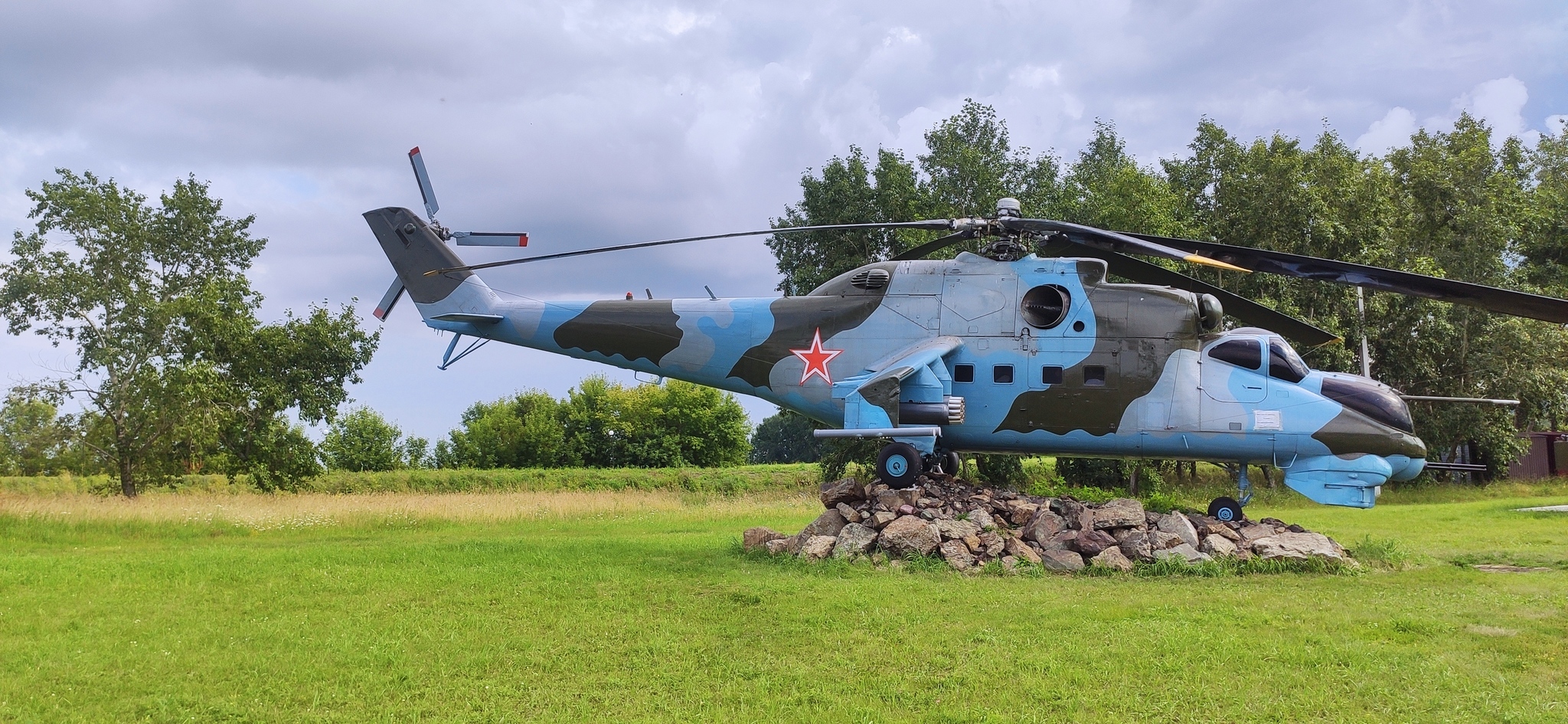 Недалеко от Новосибирска около дороги небольшой парк военной техники.
