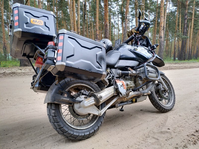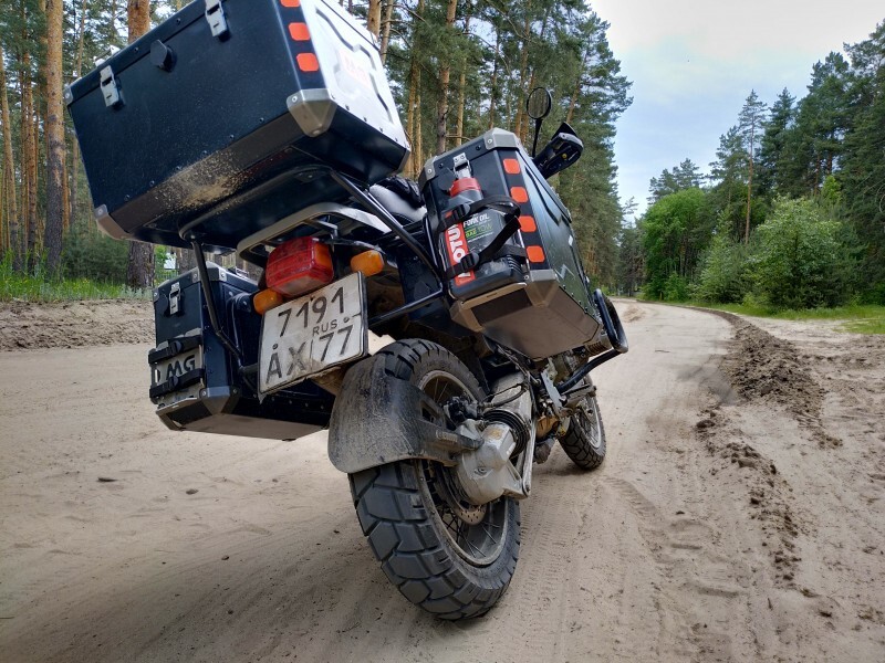 Всего накрутил 1560 км, за всю поездку только один болт крепления дуг открутился и всё. Больше проблем не было. Масло даже на больших скоростях двигатель почти не ест, уровень визуально остался прежним. Новая резина неплохо идёт по песку, главный её недостаток холод. На непрогретую она держит очень плохо. Кофры не протекают даже в долгий ливень.
