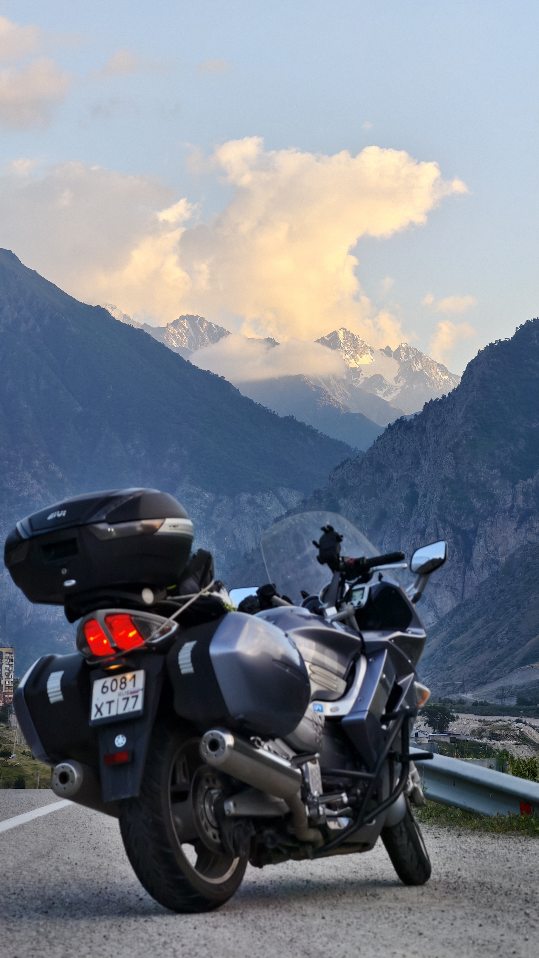 Москва-Ростов с заездом в Воронеж перекусить, путь достаточно простой, платка-платка-платка. Старался отдыхать каждые 200-250км, где-то после Воронежа повстречал двоих на BMW GT1300 и втроем очень весело доехали до Ростова, где уже начался хороший проливной дождь. Ночь в гостинице, завтрак в 6 утра, и выезд во Владикавказ под ливнем. В шлеме играет любимая музыка, едешь себе 100км\ч, льёт как из ведра, а настроение великолепное, а главное мысль - я смогу, я доеду, я справлюсь.