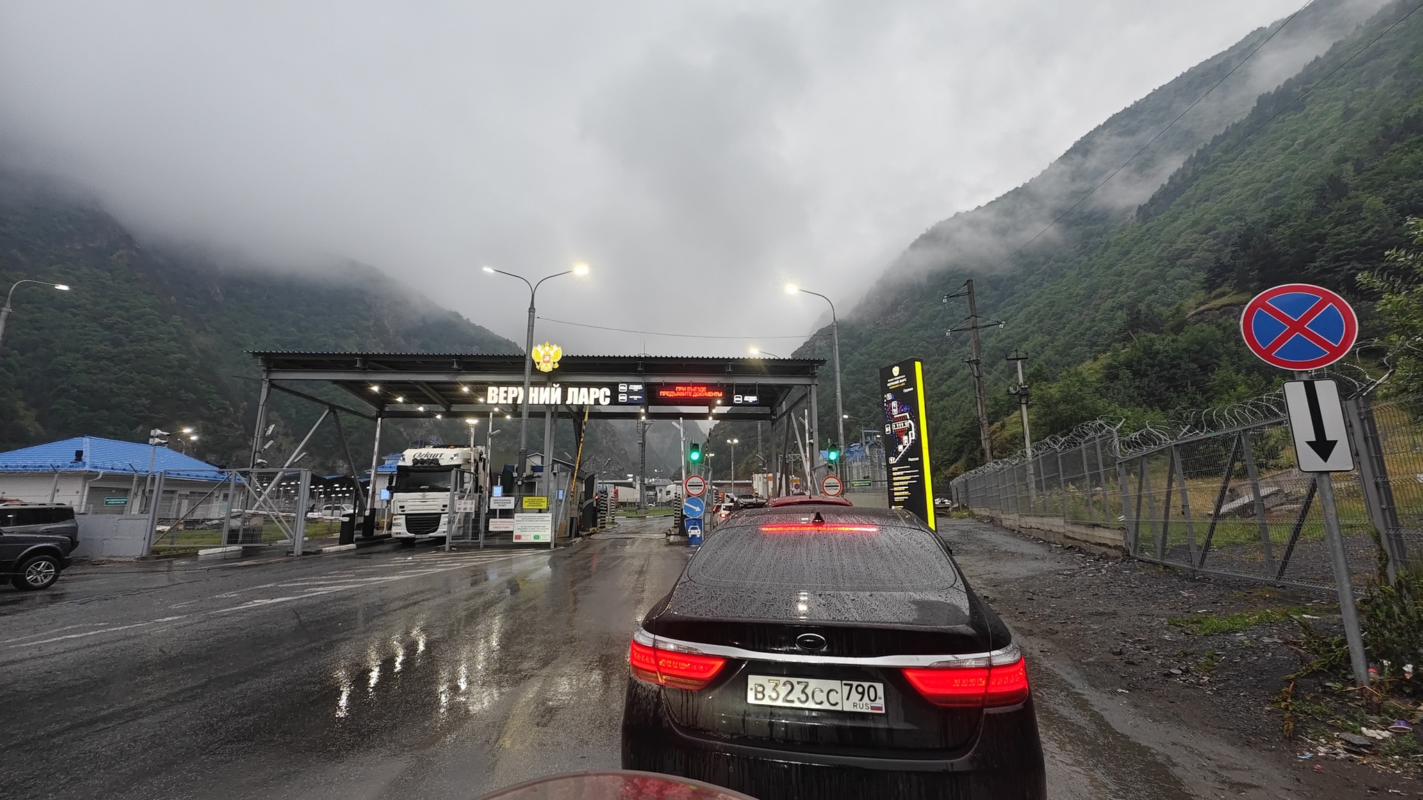 Владикавказ встретил меня легким моросящим дождиком и лил всю ночь, но удалось прогуляться немного по городу. Утро, 5 утра, надо успеть на Верхний Ларс, т.к. там пробки круглосуточно, заправка, полный бак, покупка страховки для Грузии (2000р), и 5 часов под дождем проходя границу.