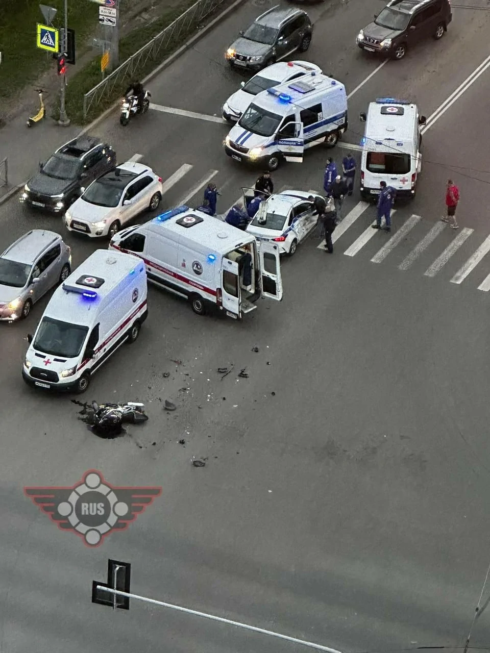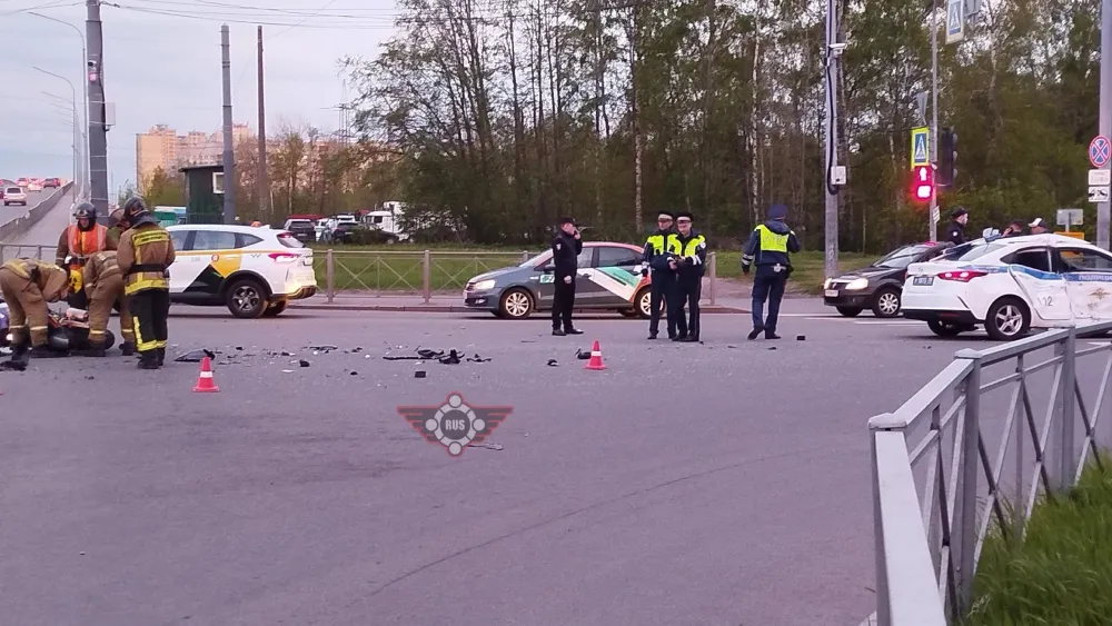 Мотоциклист столкнулся с полицейской машиной в Петербурге