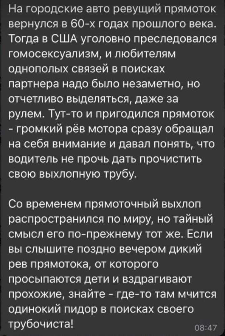 Любителям ночной езды с прямотоком желаю бесконечного поноса.