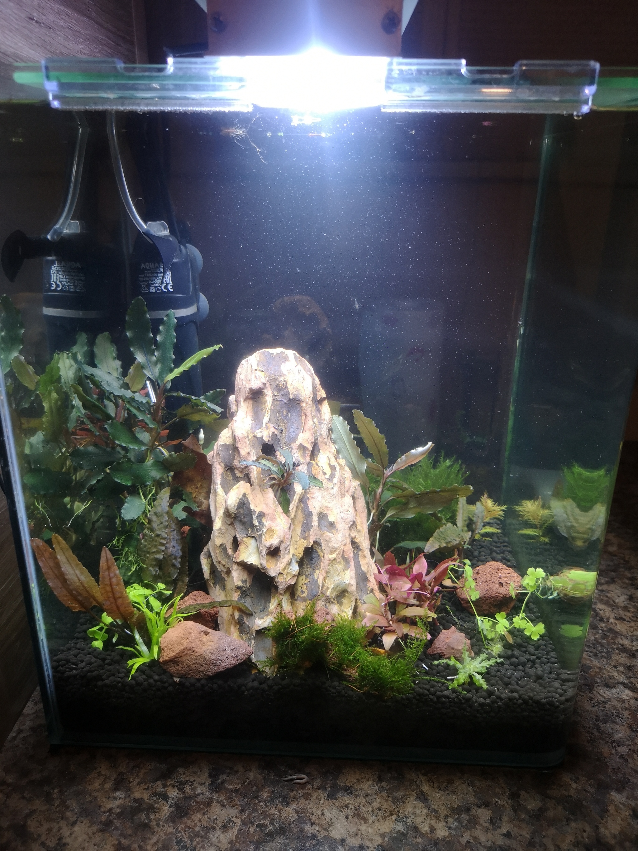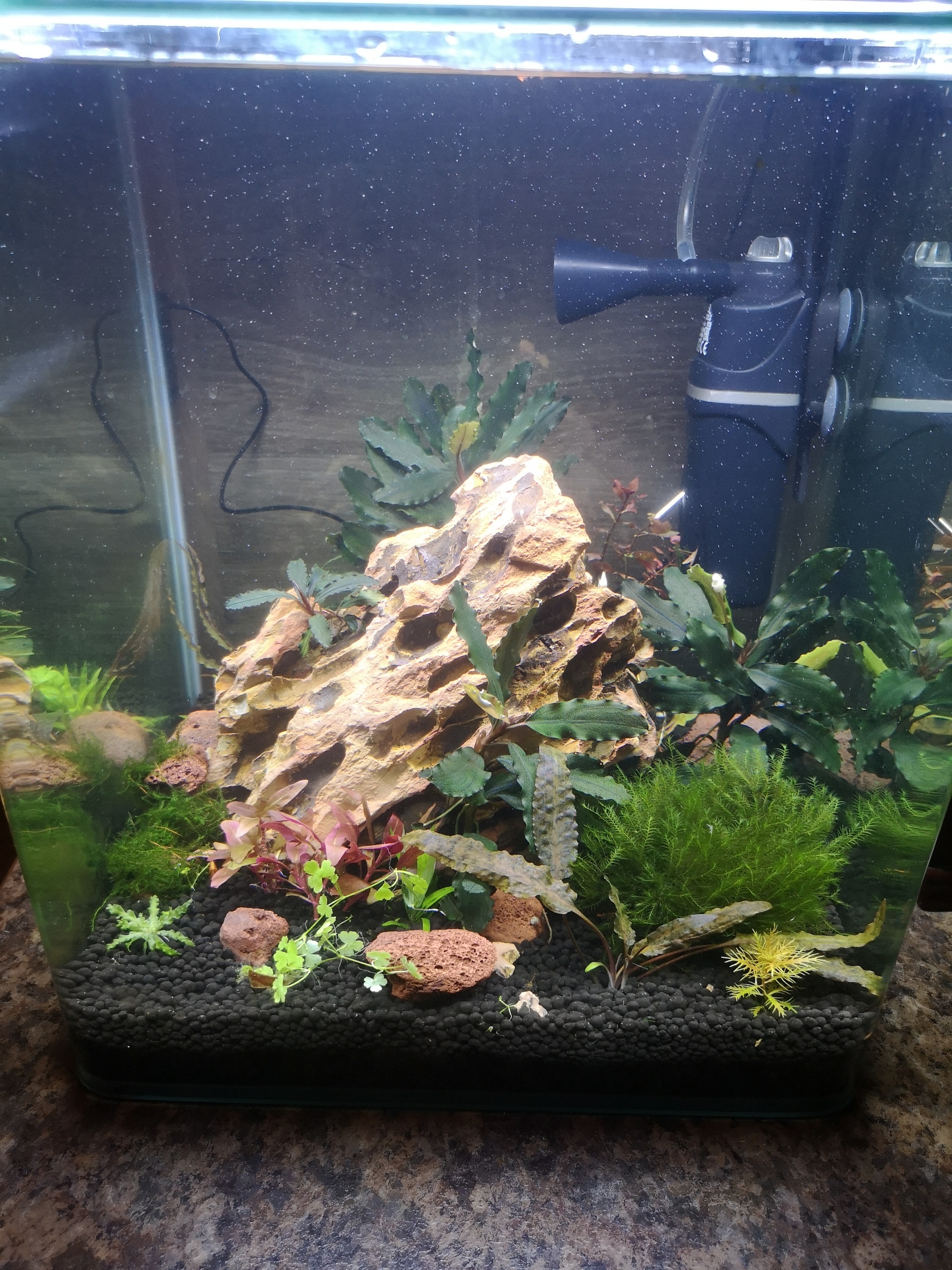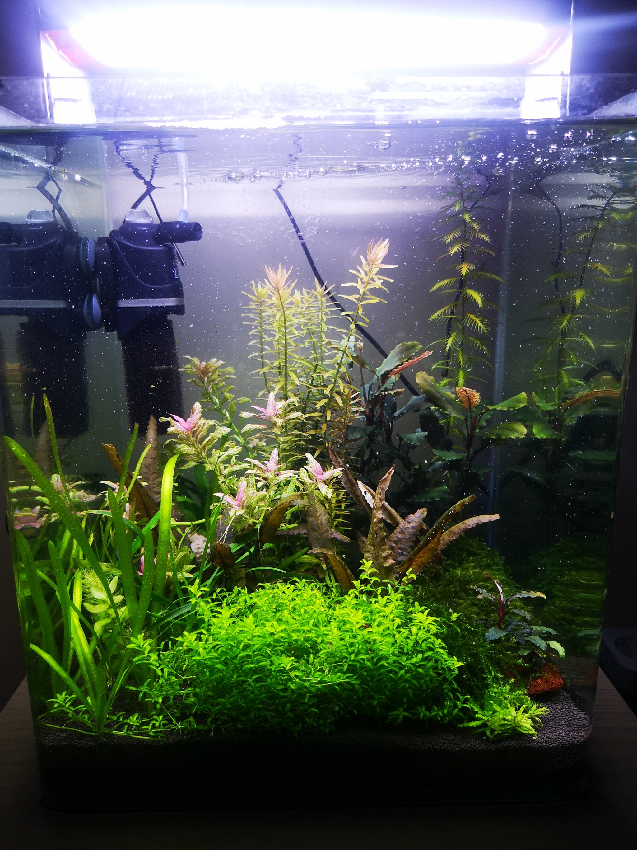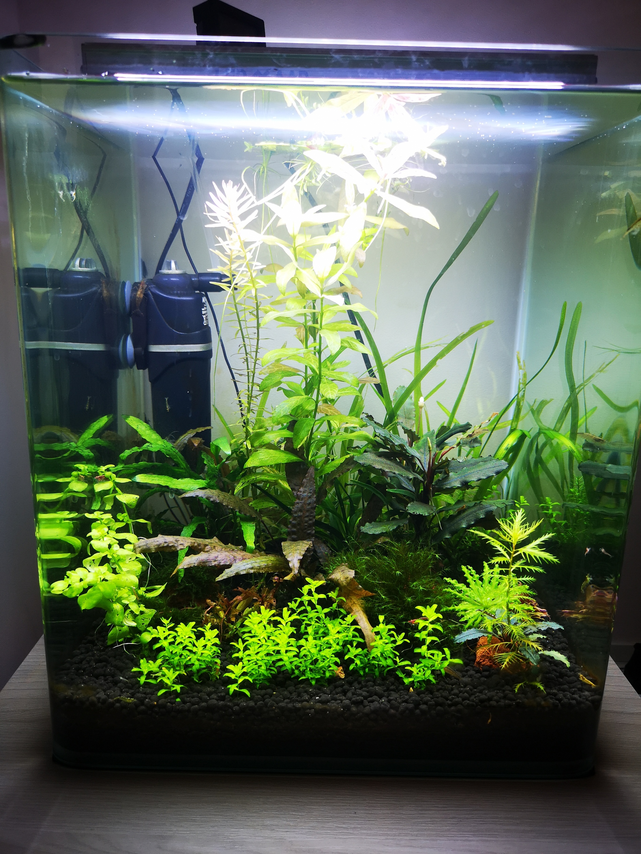 Изначальная идея была с камнем, буцефаландрами и людвигией супер ред. Без единой рыбки, с аманками и черри.