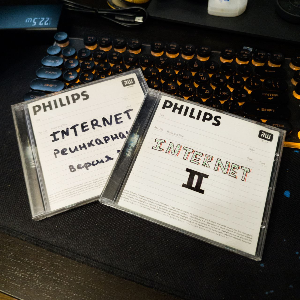 И вот таких дисков с сохраненным барахлом у меня осталось превеликое множество. Эти два - самые древние что сохранились. Сначала я забивал файлами обычные CD, а потом я забурел и купил себе DVD-привод. На этих дисках - вся моя сетевая жизнь за несколько лет. Мой собственный маленький «архив интернета» начала 2000х. Ныне совершенно бесполезный, но все равно это так мило. Диски с названием «Internet» и «Internet II». Хех. Так и не выкинул. Иногда пересматриваю. Много думаю. Племянники вырастут, покажу им, вот они поржут над дядькой.