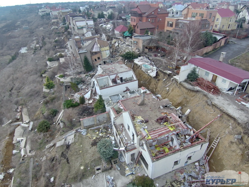Образовался крутой склон глубиной порядка 30 метров, а по участку в сторону дома пошли новые трещины.
