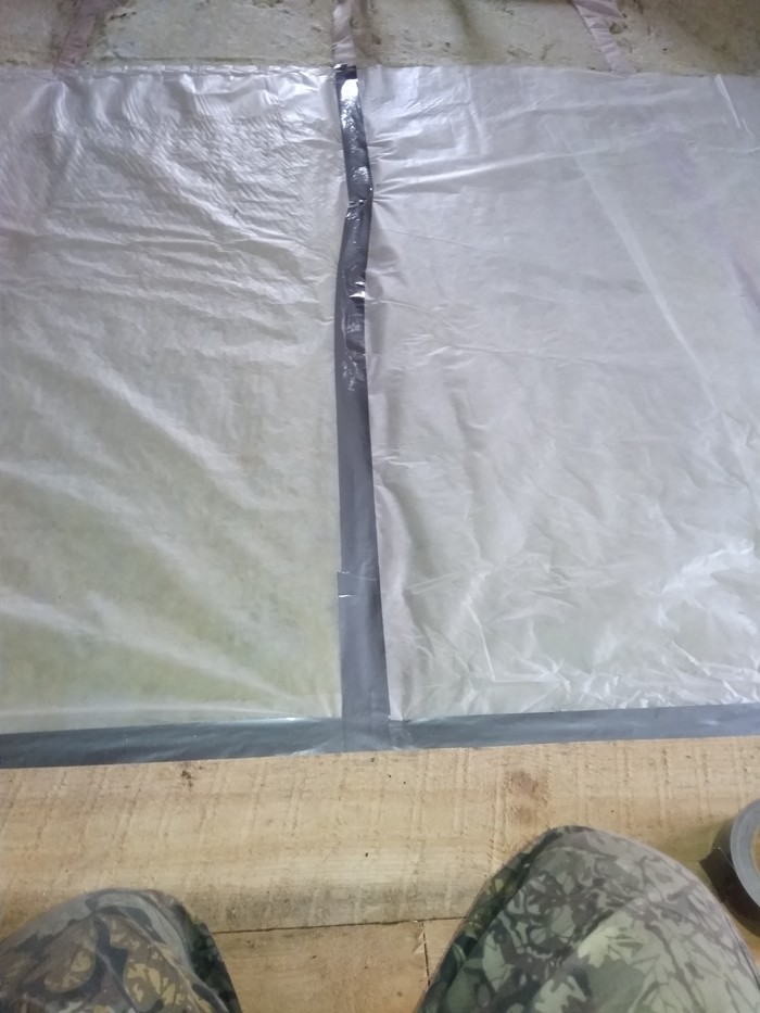 Делаю пол в доме, решил делать так, как делаю. Все стыки приклеены скотчем