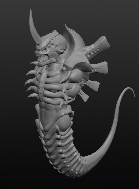 Я тут, допустим, по-тихоньку начинаю пилить упомянутых тиранидов в 3д - вот такую модель без конечностей пока заделал.