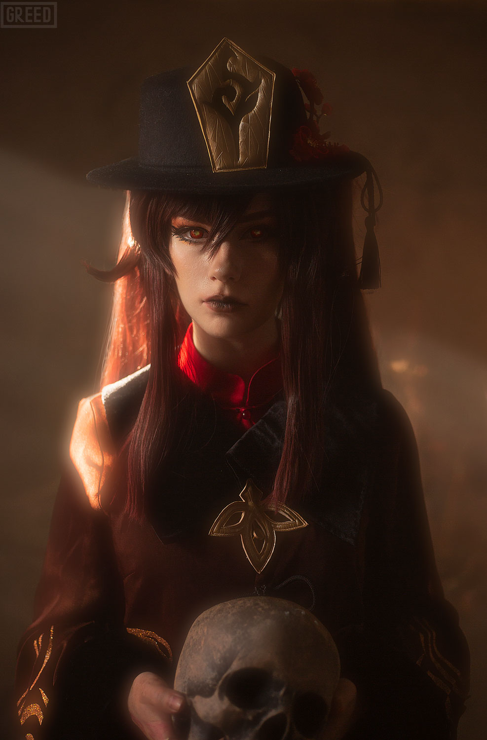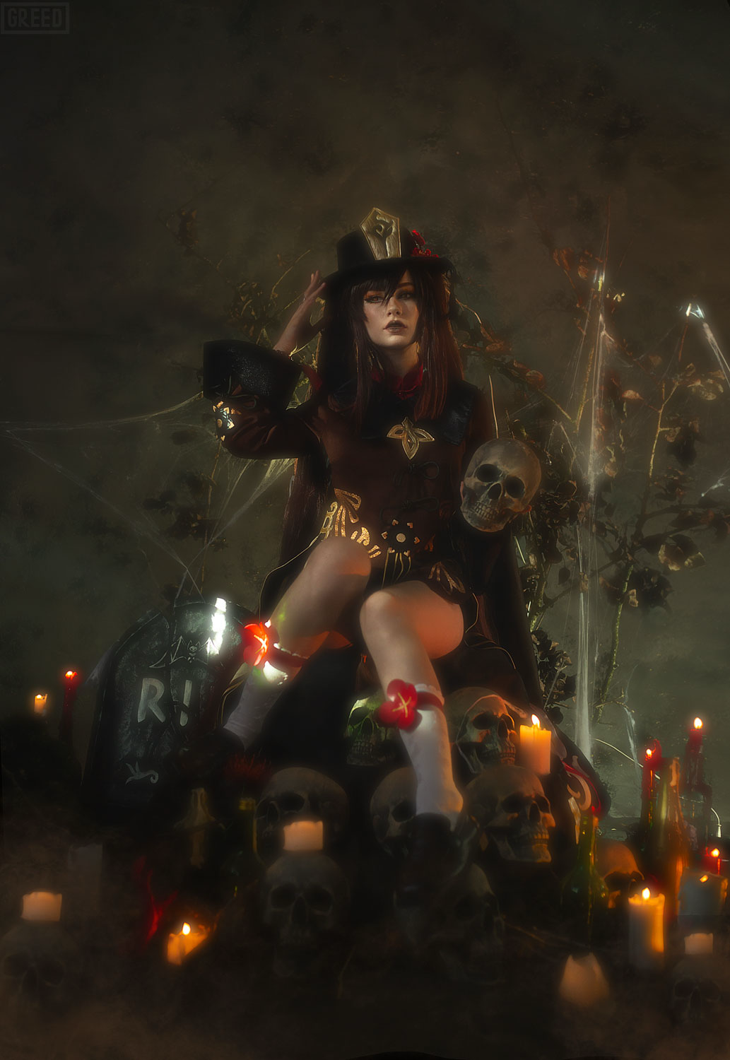 Мой косплей Ху Тао с самодельной локацией для сьемки