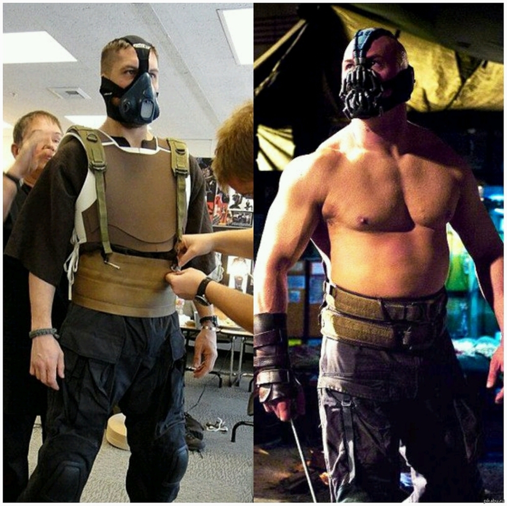Харди конкретно в роли Бейна был дрищ. Весил около 80кг и далеко не был сухим. Лично мне Бейн (Харди) не кажется ни здоровым, ни огромным. Просто у него были такие позы, плюс ФШ и видео монтаж. Не умаляя заслуг Харди конечно. Один из самых любимых актеров. Но говорить, что Бейн был здоровым, не правильно.