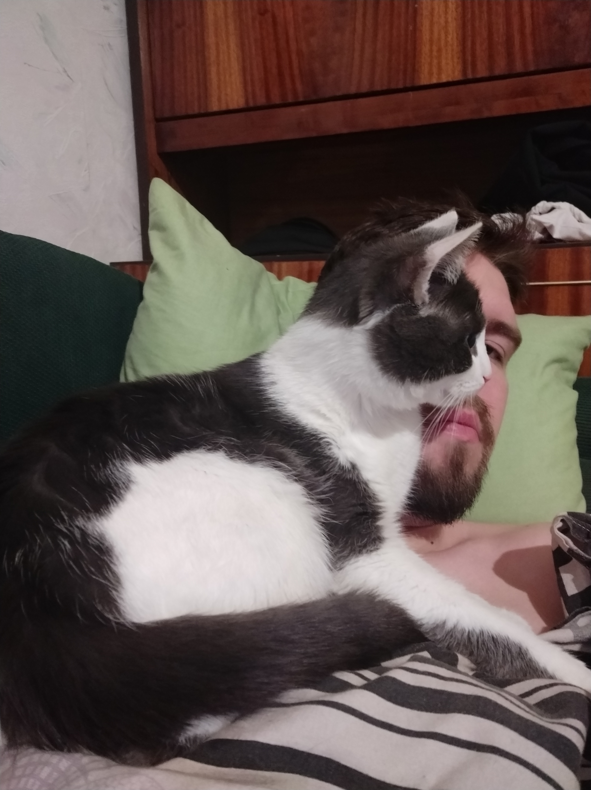 Случайно всё) немного достал) как сказала подруга, слишком залюбивный котэ) но он наш член семьи)