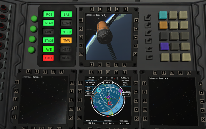 RasterPropMonitor и RasterPropMonitor Core - мод, "оживляющий" мониторы кабин космического корабля. На них можно выводить различную техническую и навигационную информацию и даже изображение с внешних камер (добавляется специальная деталь).