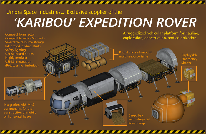 USI Exploration Pack - добавляет ряд деталей, том числе командные модули, винтовые атмосферные двигатели, детали мини-ровера (Rat) и кучу всяких приятственных мелочей.