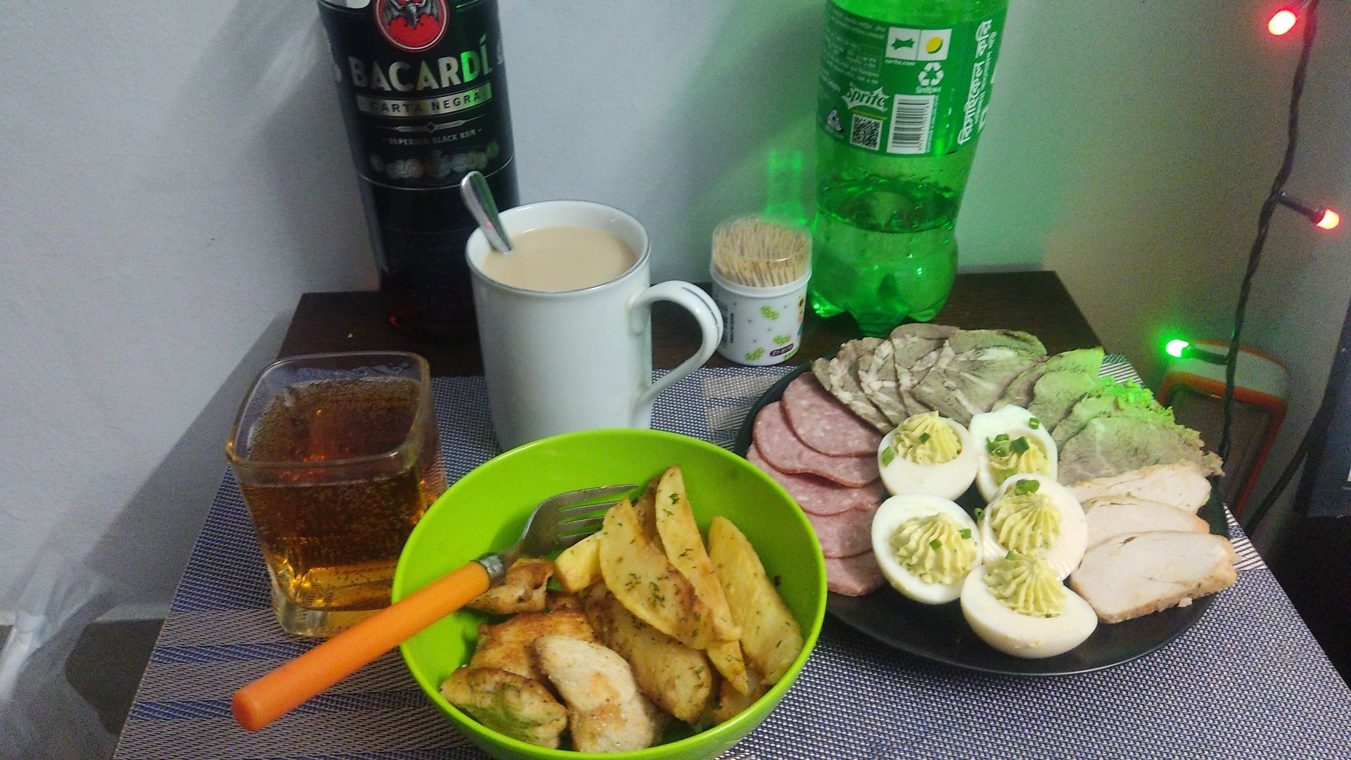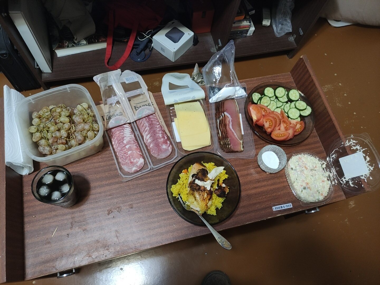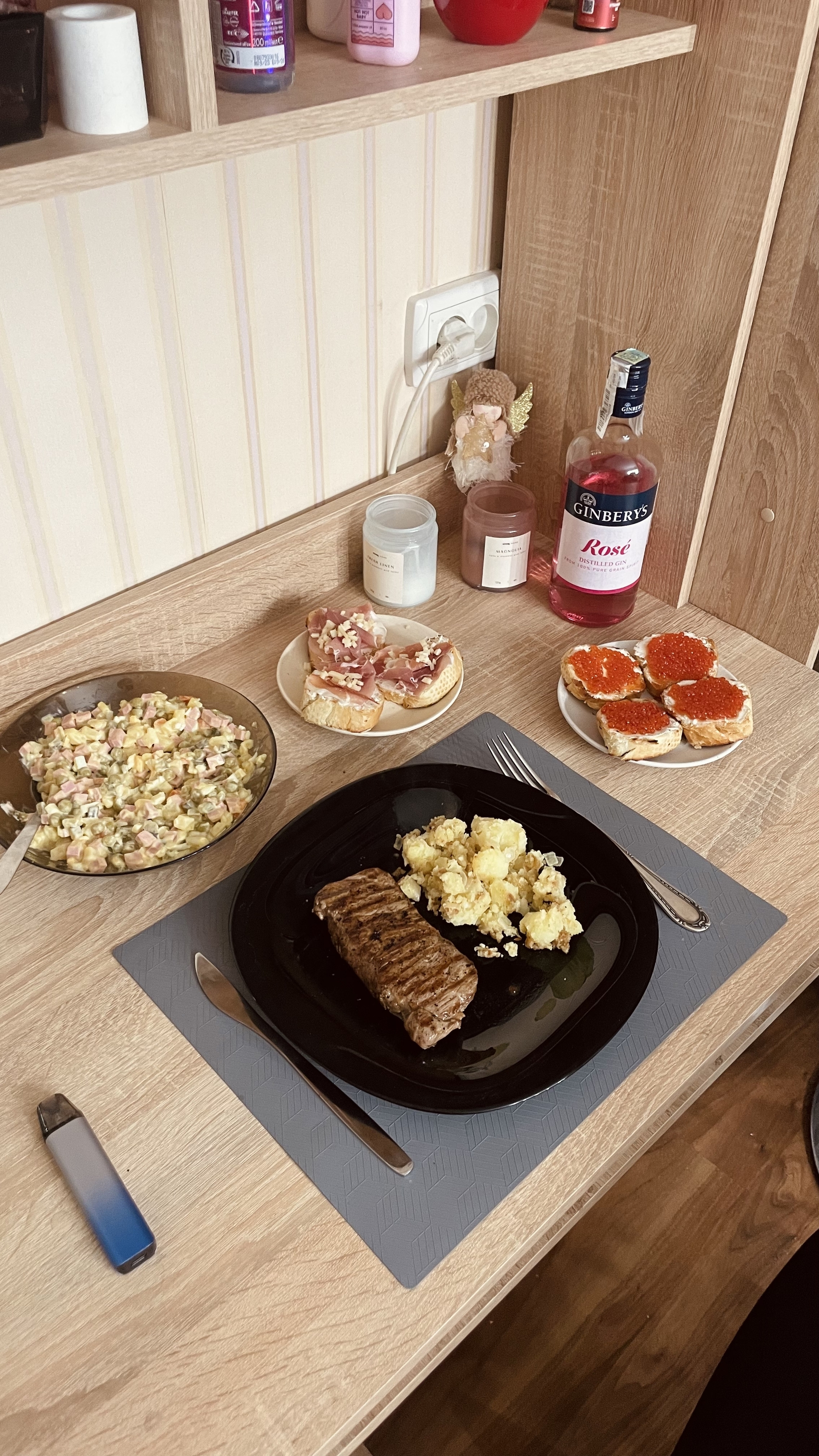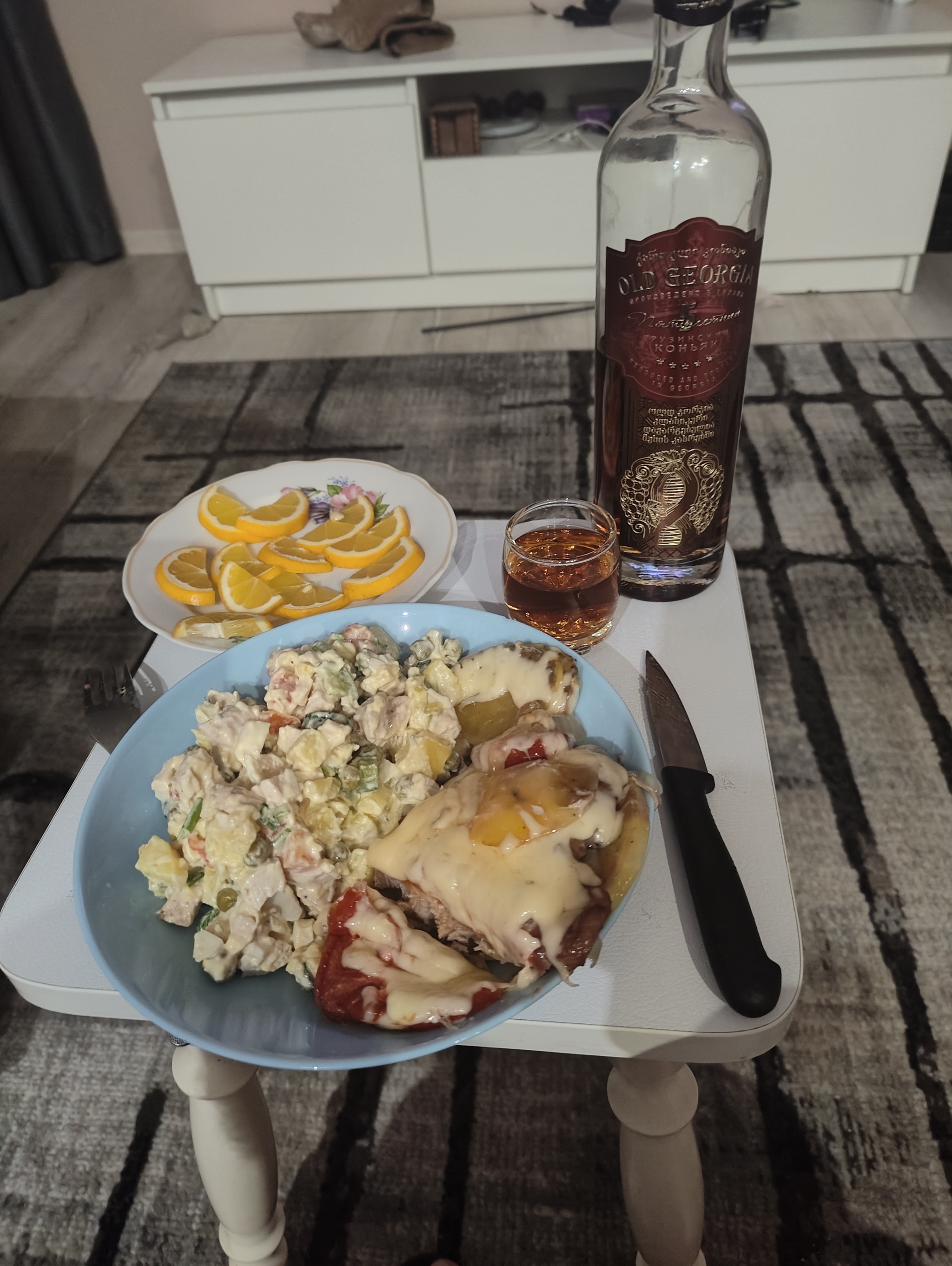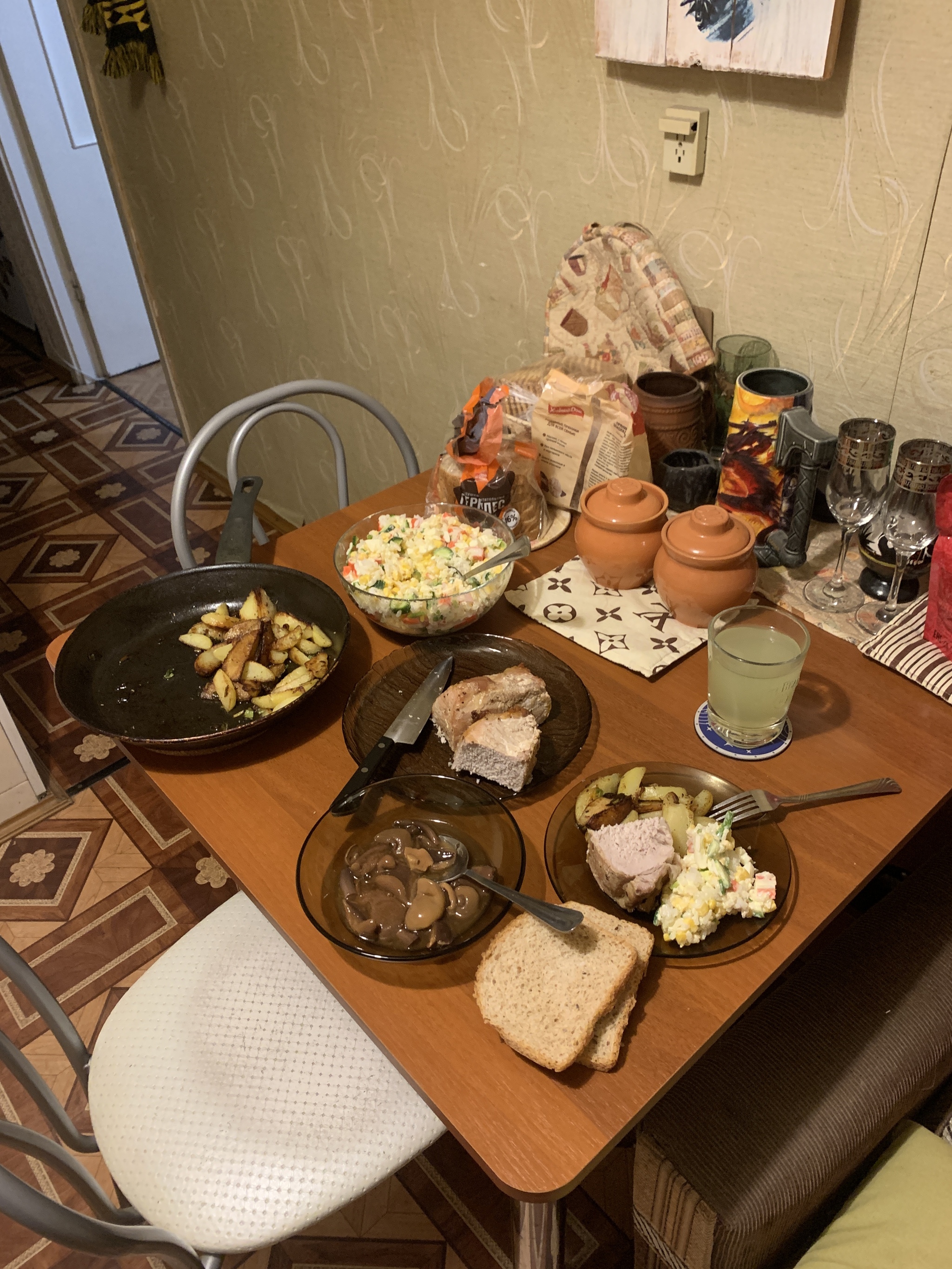 Я решил не тухнуть дома один, собрал ещё двоих одиночек и отметили)стол накидал за два часа) сам готовил только овощи на пару) остальное только нарезал)
