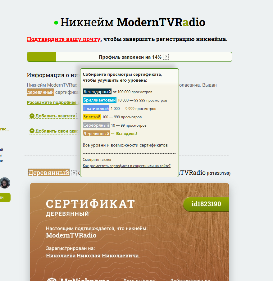 Мой никнейм ModernTVRadio официально зарегистрирован
