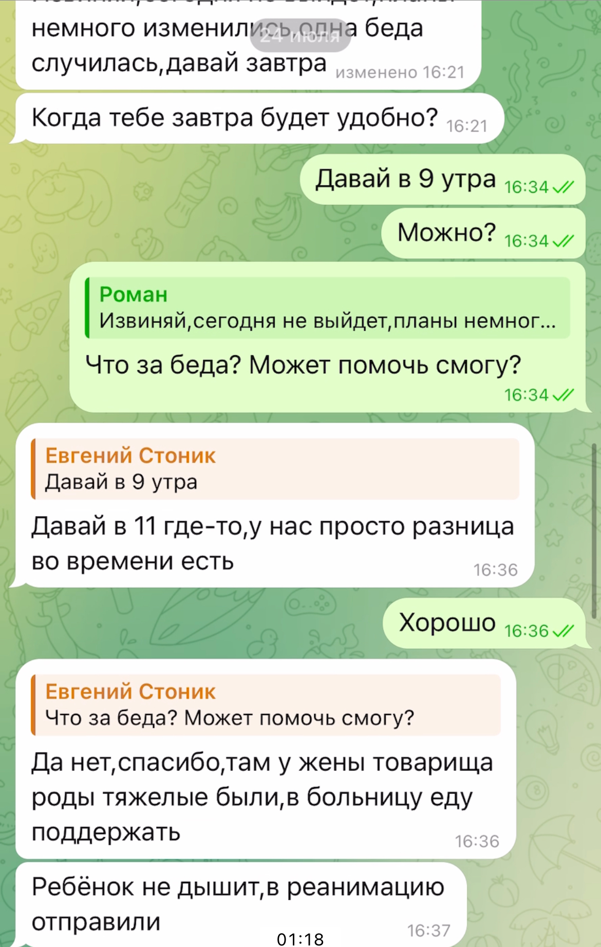 Обстоятельства не хотят делать меня человеком класса выше среднего. Разговор с обучением был перенесен из-за внешних факторов. В начале у Романа случилась беда, он как настоящий верный друг, поехал поддерживать своего товарища. ( случилось что-то с ребенком при родах) . Потом у меня связь не работала там, где я находился.