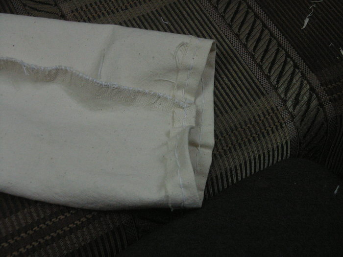 затем подрезается рукав, чтоб было симметрично, рубаха выворачивается, рукав сшивается и обычным стежком в два слоя прошивается отворот рукава.