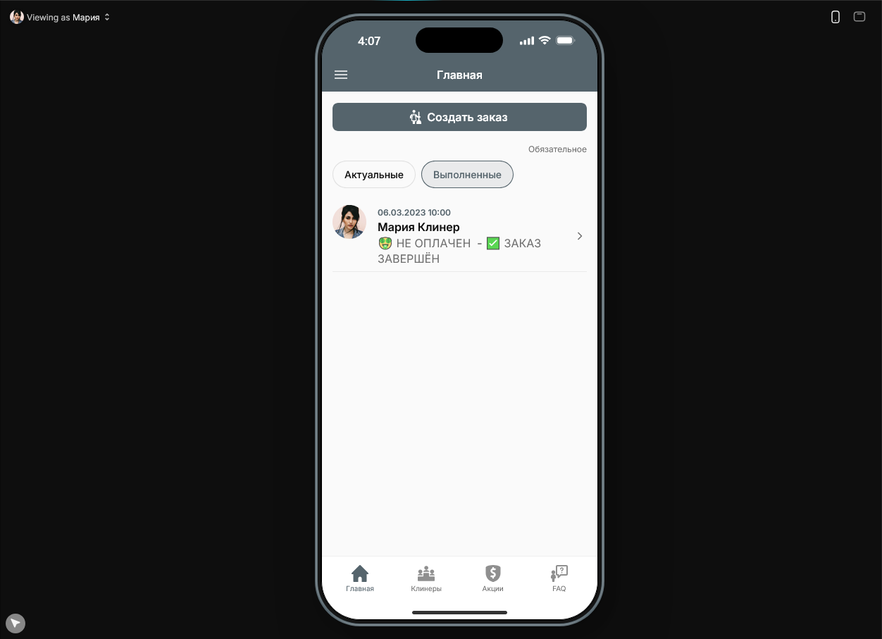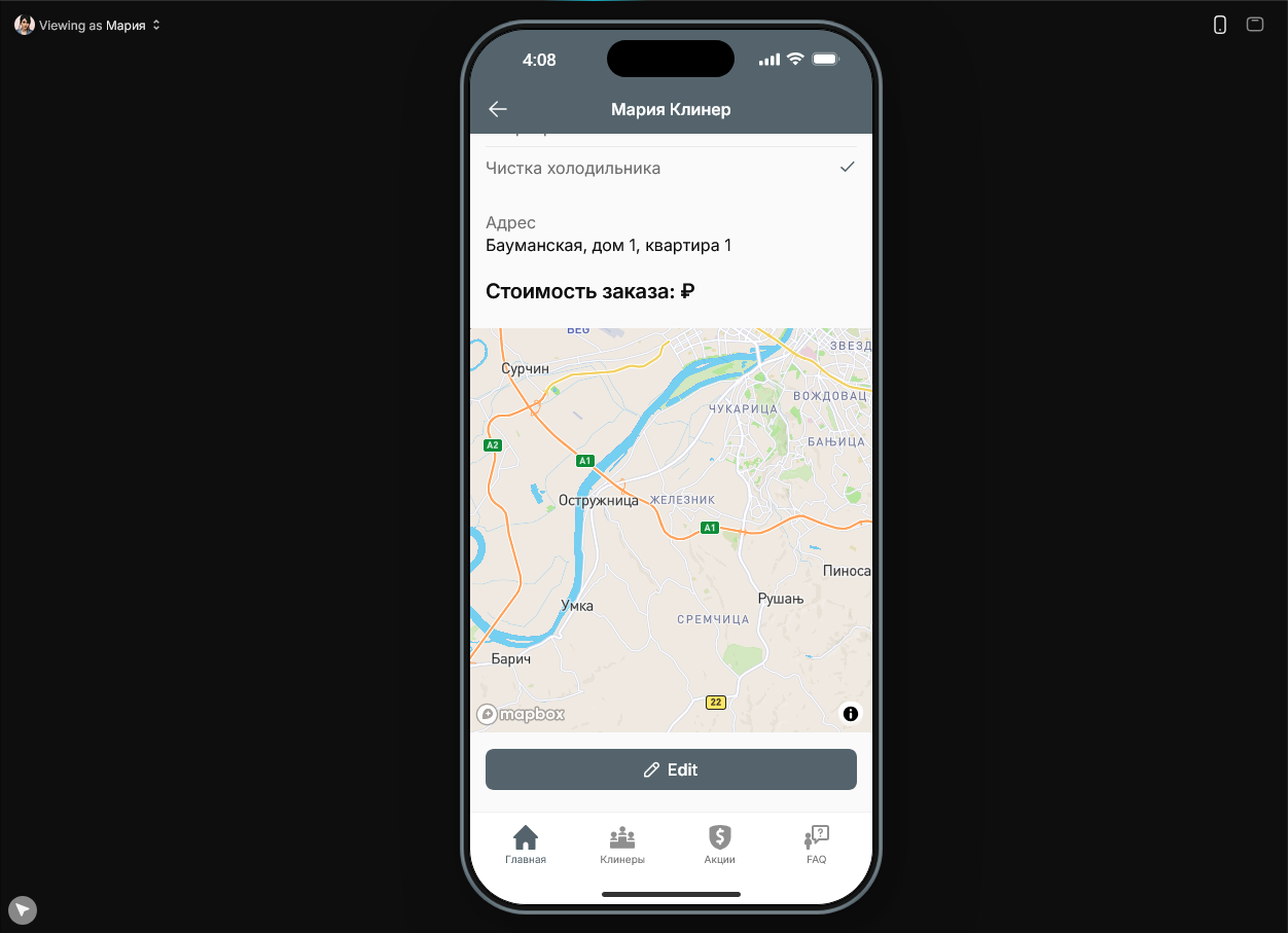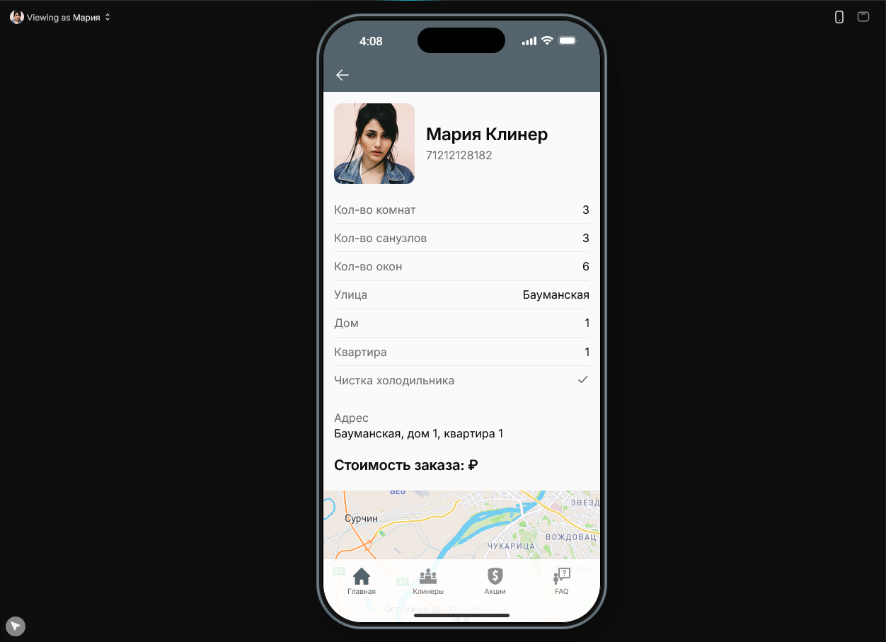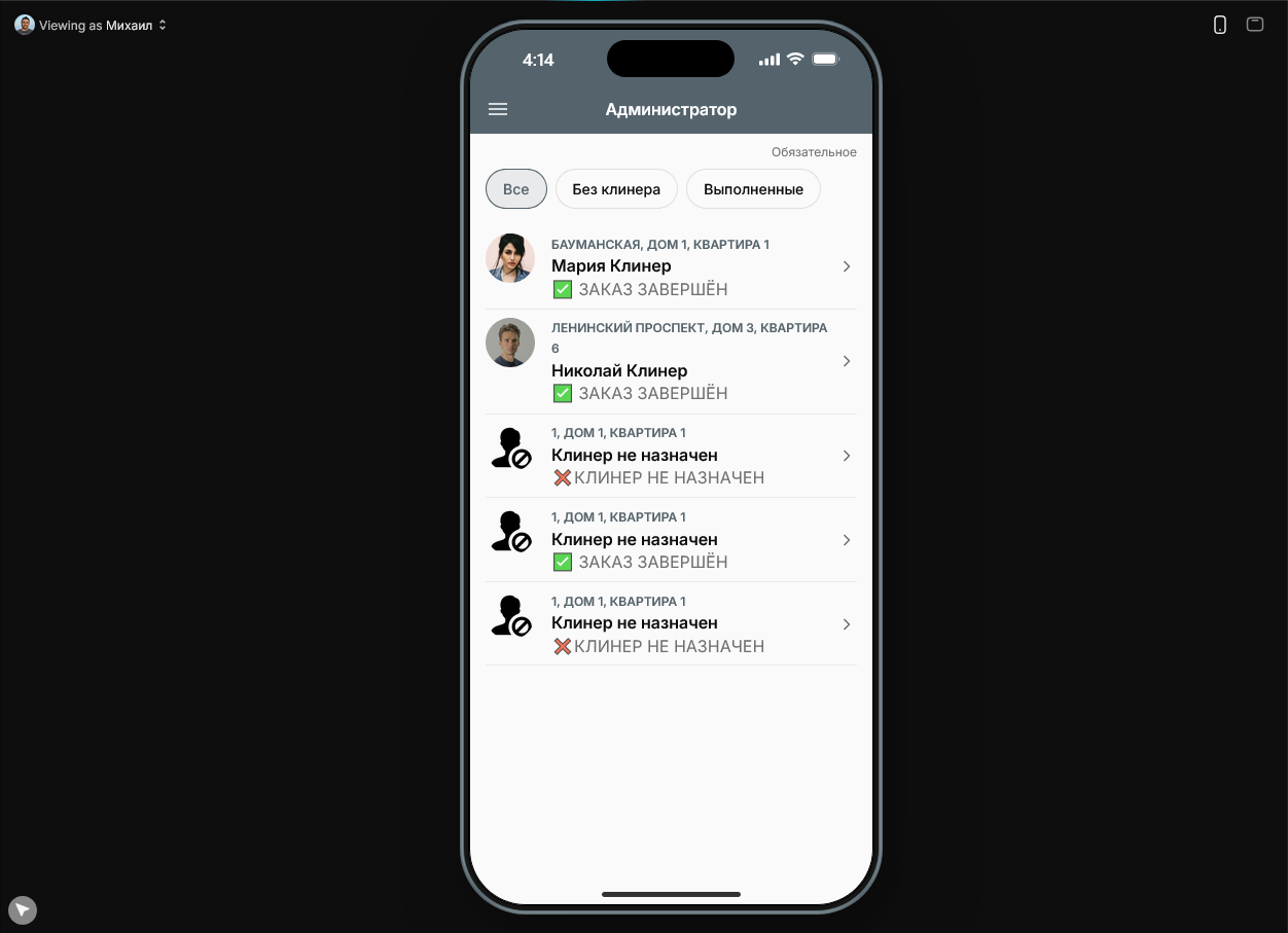 Второе приложение которое я создал на этом курсе это воссоздание Qlean. Здесь принцип работы тот же самый, но есть и новый функционал типа интеграции карты. В админском приложении всё ещё проще: нужно смотреть статус заказов и назначать клинеров.