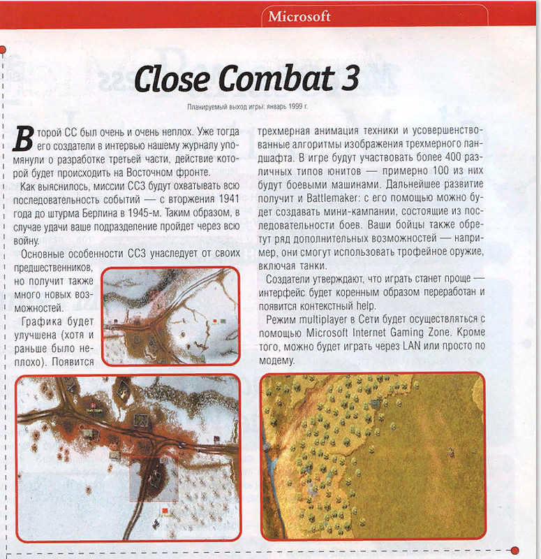 О грядущей Close Combat III: The Russian Front так же узнал из любимого журнала. На это раз — из #7'1998, посвящённого выставке Е3, в 1998 году находившейся на пути к пику своего развития.