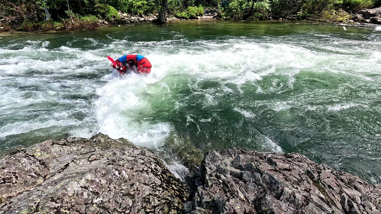 Начну с того, что порог, в котором я приключилась, называется Яма. Это последний именной порог на Большом Казыре (Хакасия), и в эту воду мы оценили его на третью категорию сложности. К слову, в сентябре прошлого года мы прошли его и даже не заметили.