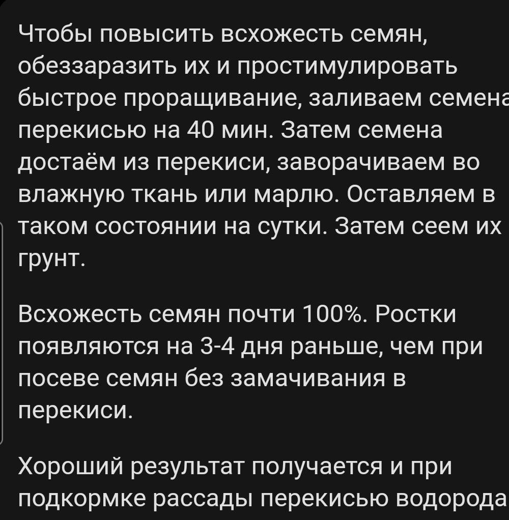 Я из магазина брал землю, а с огорода овощи и фрукты. По всходести у меня почти все взошли. Проращивал с перекисью