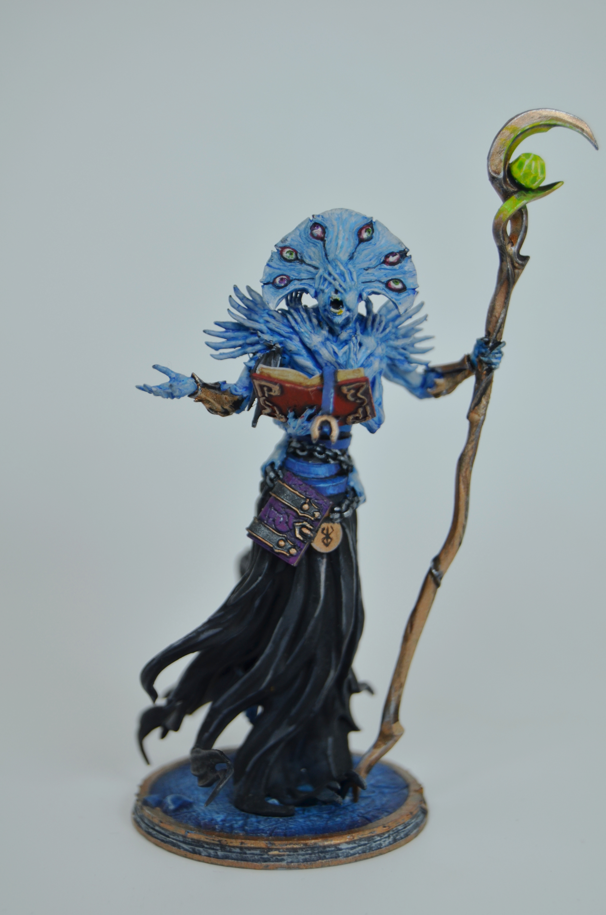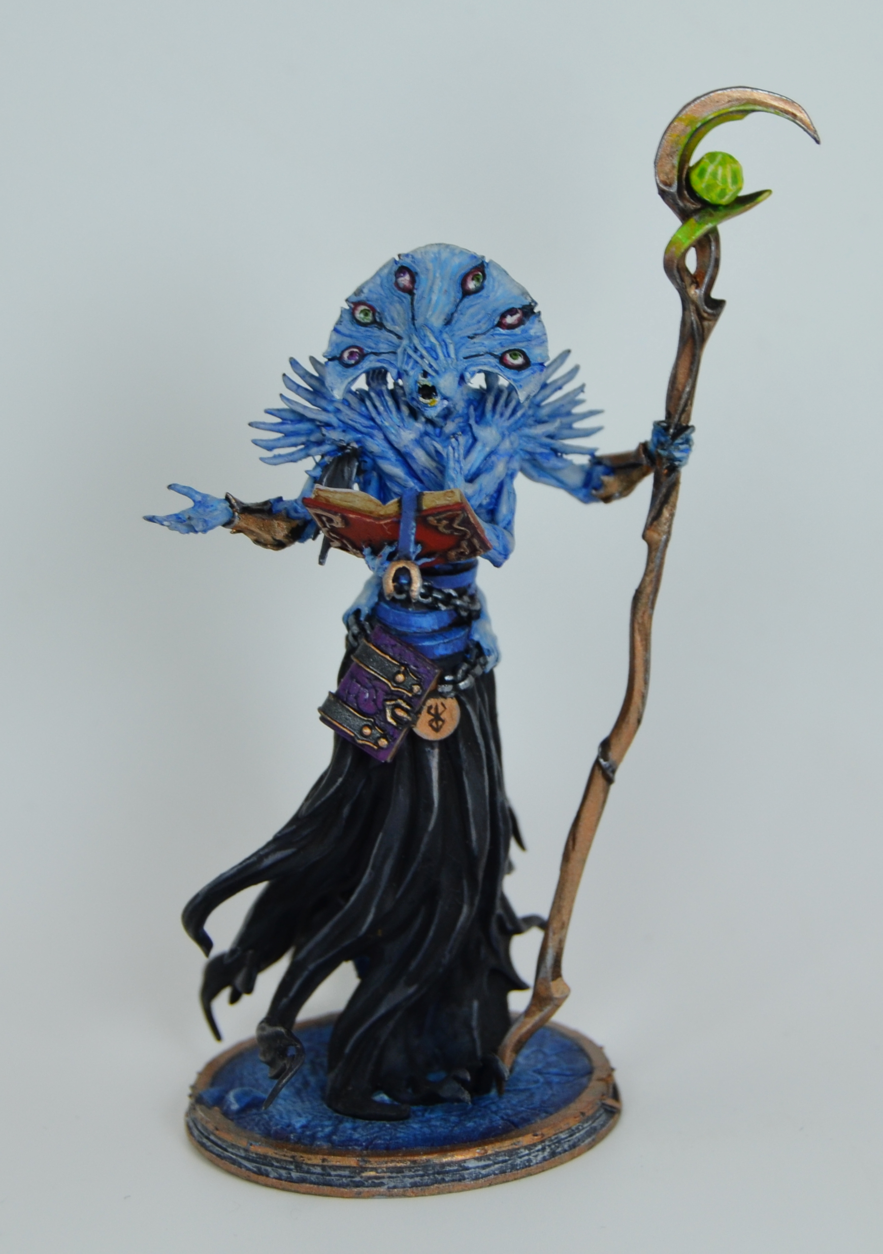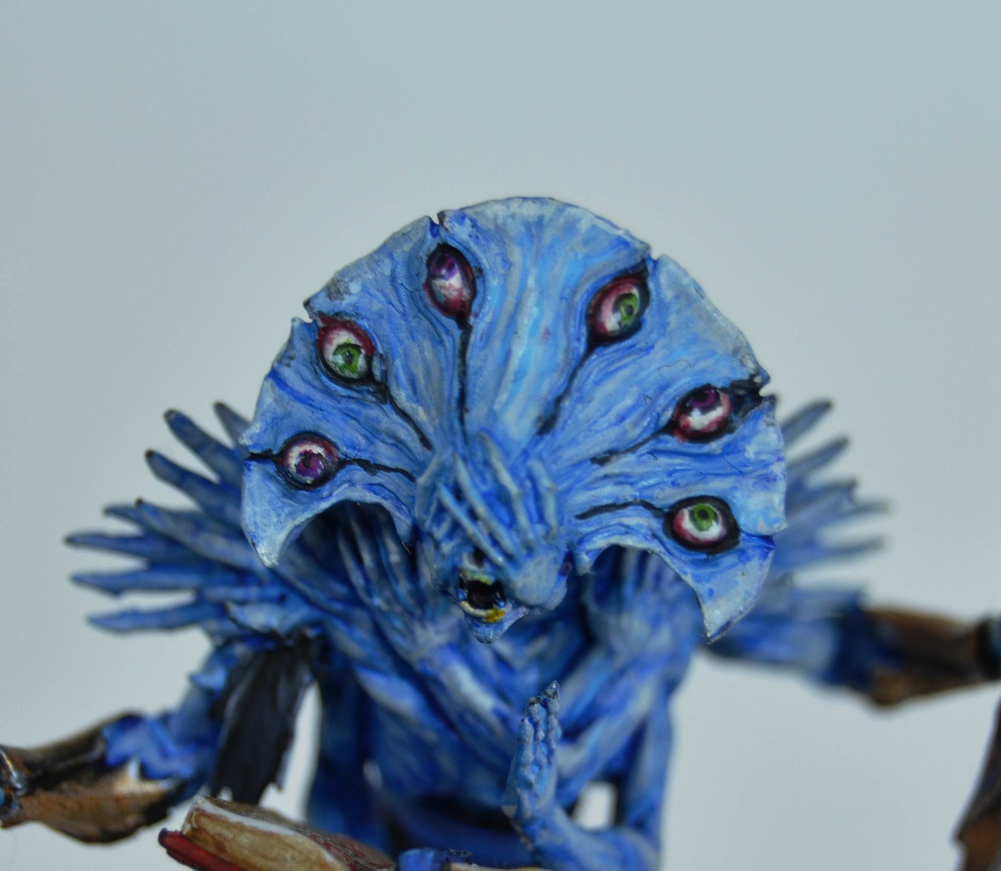 Поскольку модель большая, я решил сильнее поработать над глазами. Да и вообще принял решение красить эти наросты не камнями (как видимо предполагалось изначально), а именно глазами. Что бы подчеркнуть нереальность и потусторонность этого существа, было принято решение, что бы каждый глаз смотрел в свою сторону, никогда не фокусируясь на чём то одном.