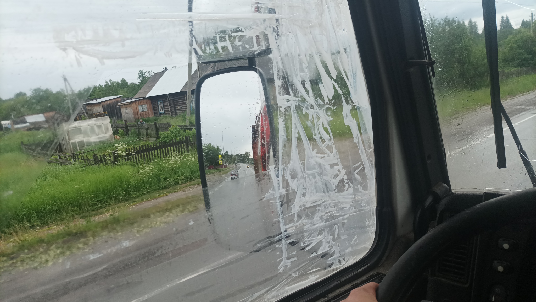Устроился работать на Мазе.Во время обгона(крузак обгонял), мне выбило,камнем боковое стекло. Дождь, грязь... Спасибо ссс...ка...