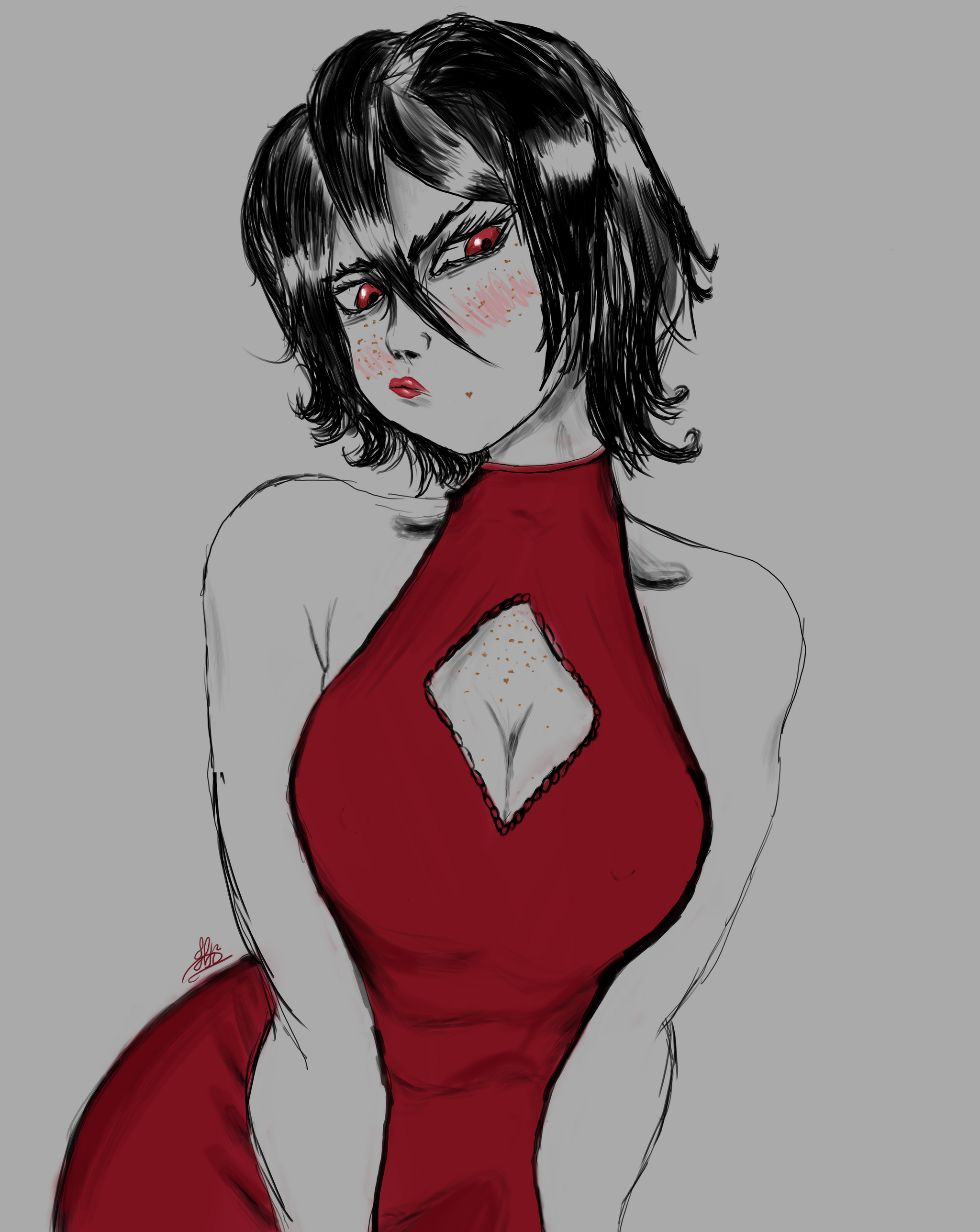 16 kinfe Мой первый рисунок на планшете 4 месяца назад [моё] Anime Art Арт Платье Красные глаза Рисование Первый пост Первый опыт Вечернее платье Красный Ещё 0