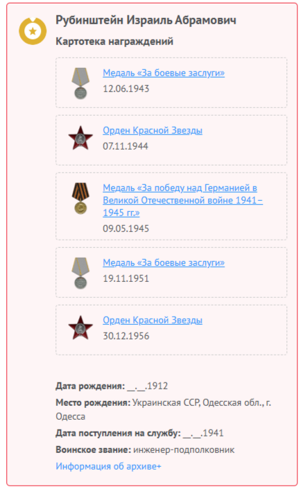 Ну да, это он. Я по памяти писал, мог и напутать. Мб войну и не майором уже закончил. А с годом рождения не сходится, потому что он себе один приписал ещё лет в 17, чтобы учиться пойти. Тут тоже деталей уже не помню, к сожалению. Но родился он именно в 1913.