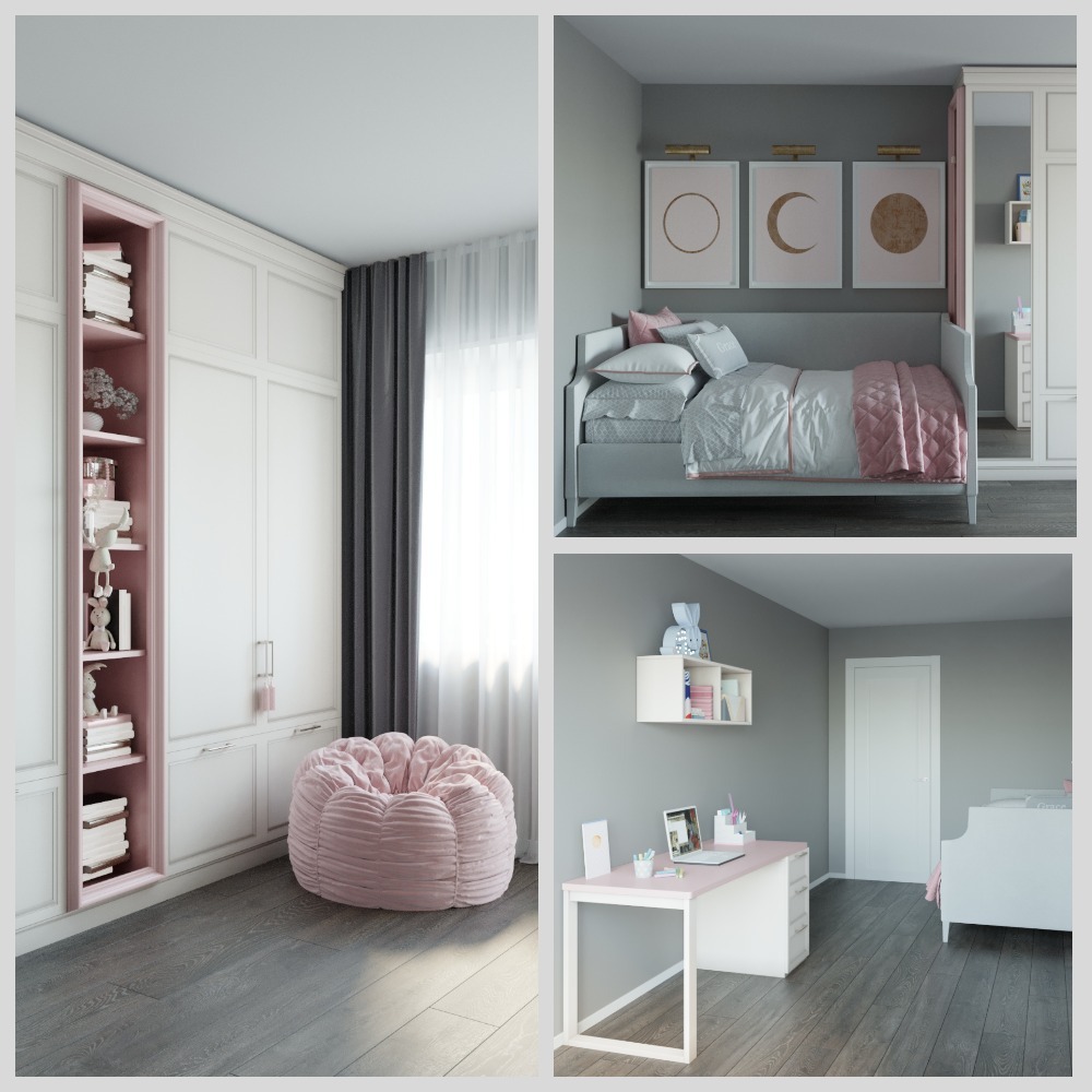 Недавно в работе у меня были две детские для девочек, я вспомнила про свой древний проект детской, решила сделать коллажи и сравнить, чтобы наглядно увидеть свой прогресс. Результаты меня порадовали, и я подумала, что они могут замотивировать и других не бросать заниматься тем, что нравится, даже если сначала получается не очень.