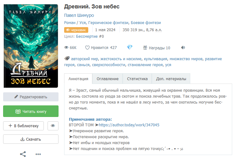 Закончил первую книгу из предполагаемого цикла и начал искать площадку на которую всё это добро можно загрузить, чтобы получить денежку. На тот момент топовый сайтом был АвторТудей(много посещений ежемесячных и громкие писатели).