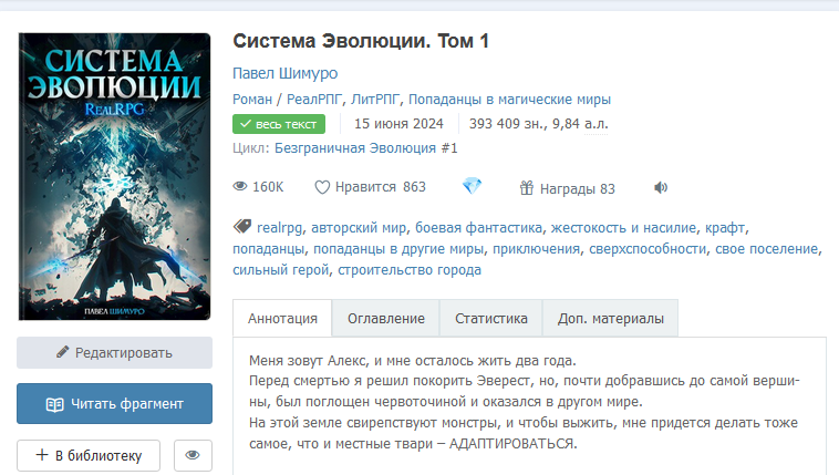 Предложили мне зафиналить "Систему Эволюции" и написать другой цикл, вложить деньги в рекламу на старте новинки и прям разорвать площадку(ха-ха).