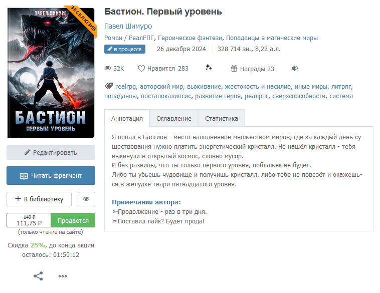 Прошёл месяц, вторая книга из цикла готова. Начал выкладывать всё строго по рекомендациям, но столкнулся с тем, что это никак не улучшило без того гиблую статистику книги.