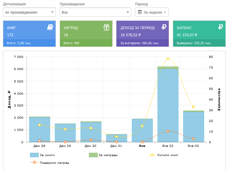 Кто-то предлагал увольняться и жить чисто на писательстве. Может это и хорошая идея, но пока доход сильно далёк от того, что я желаю увидеть.