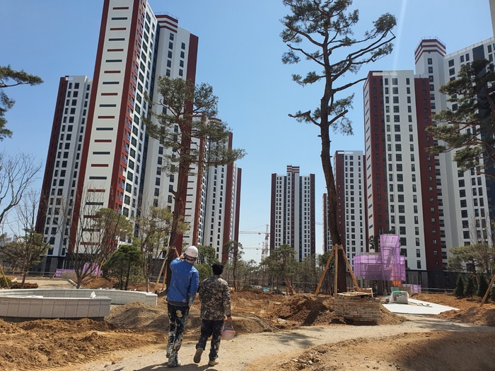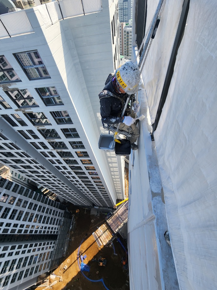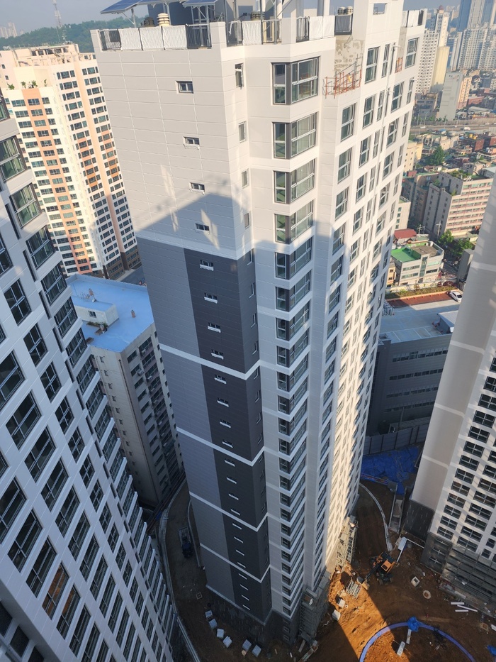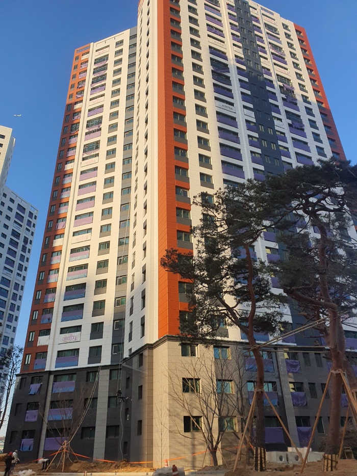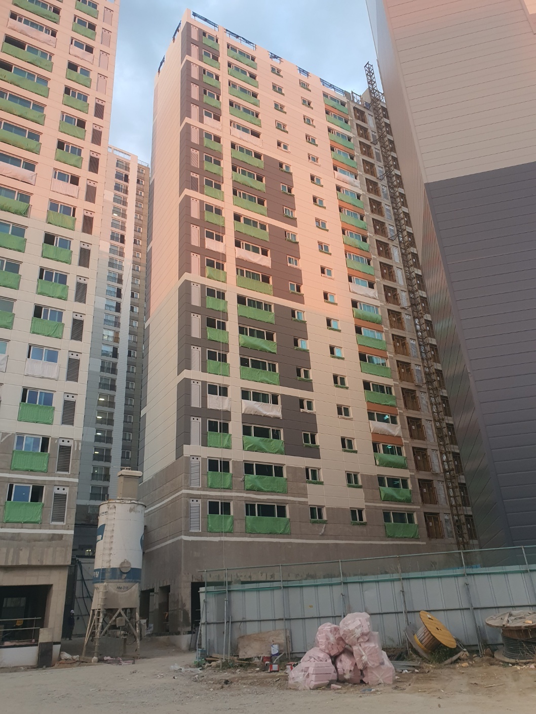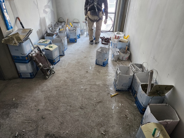 В этот раз повезло, цветов всего 4. А бывает и более 10. На вопрос почему не красим краскопультом. В Южной Корее валиковая покраска считается более дорогой. Почти все новострои идут под валик. Мало того безвоздушную покраску вообще стараются запретить. Очень много жалоб.