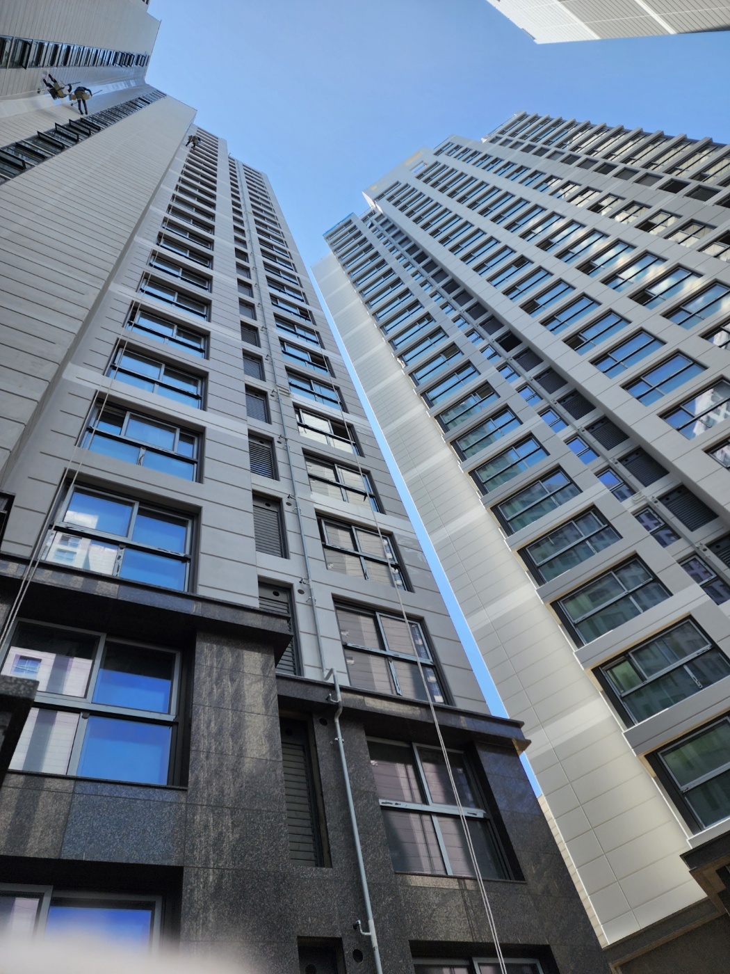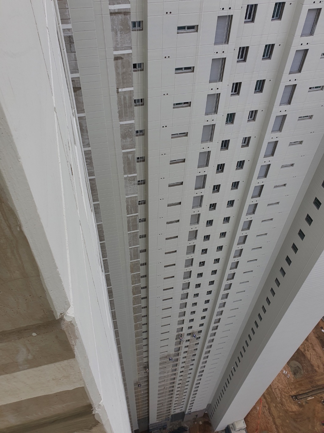 52 этажа закрасил за 1:50. Ширина полосы около двух метров.