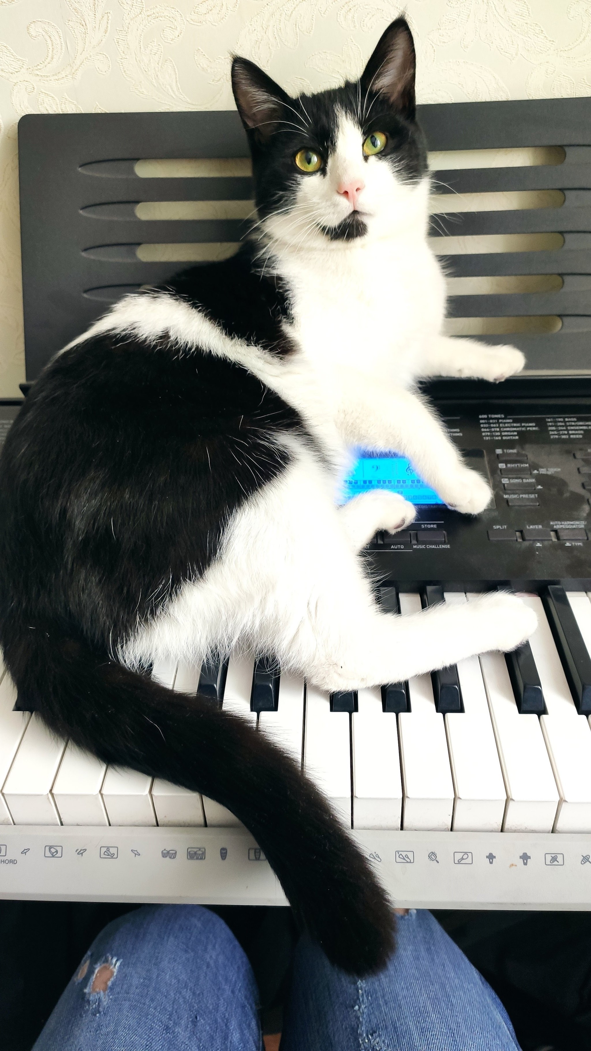 Подбежал ко мне на улице в октябре, и вот почти полгода живём вместе. Сидел перебирал всякие имена, кот решил отозваться на Люцифера, так и назвал)