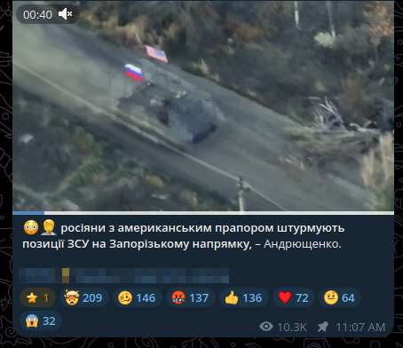 Американская БМП, которую передали украинцам для войны против России, захвачена нашими солдатами. Теперь она едет одновременно с флагами России .... и США.