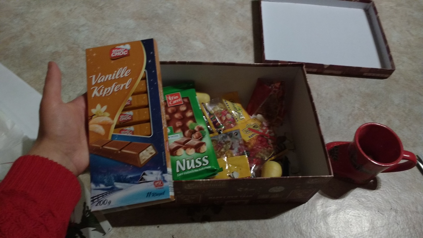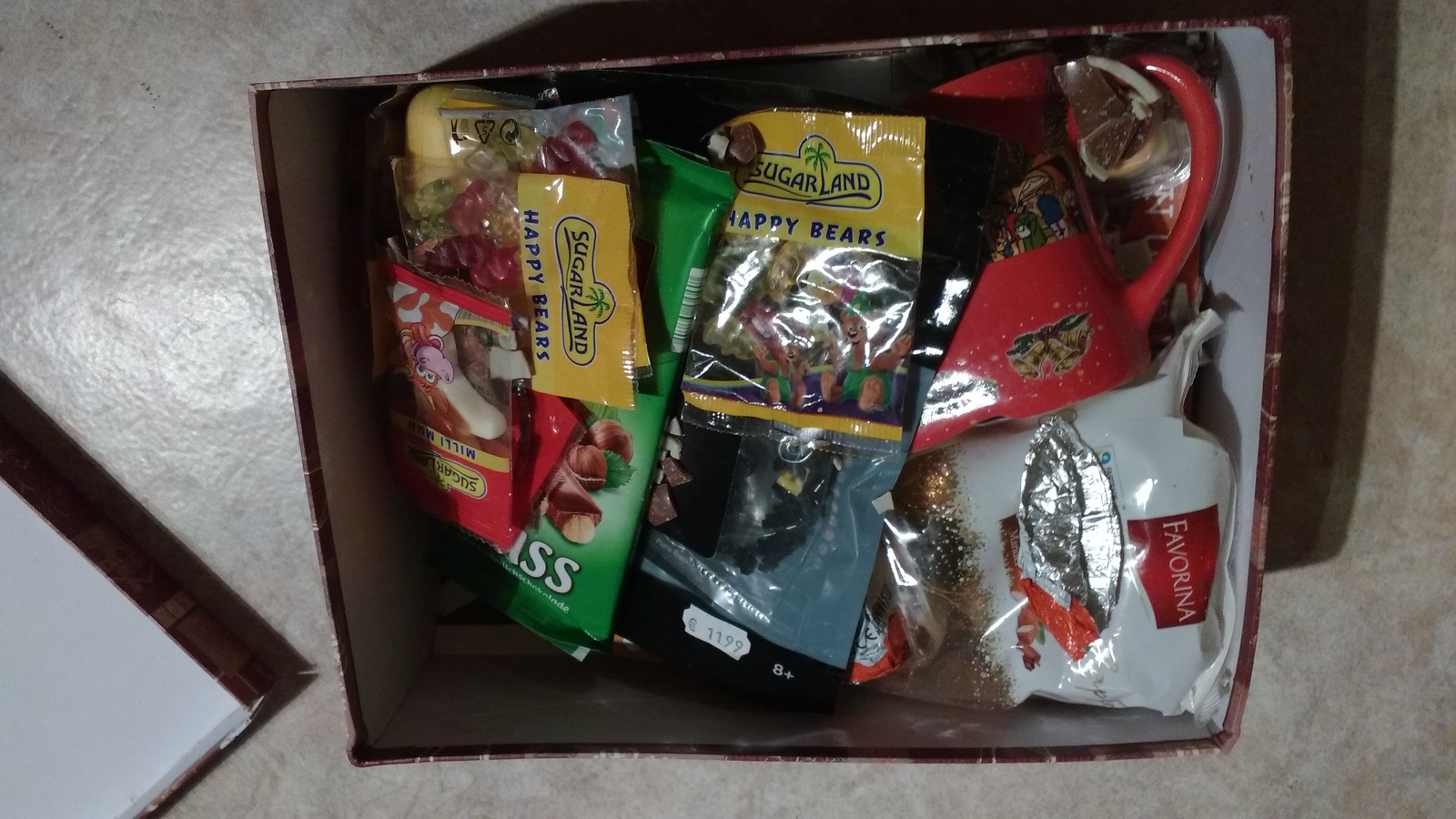 Да, там была миленькая кружечка в виде сапожка, заняла почетное место на комоде :3 (фото нет, но на общем ее видно).