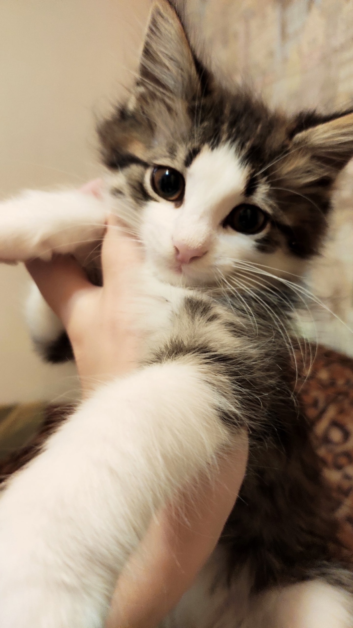 Вот таким я его подобрал за мусоропроводом полгода назад. Его какие-то редиски подбросили в подъезд, и он всю ночь орал от холода и страха. Когда я выходил в подъезд в поисках источника шума, он замолкал и прятался. Утром перед работой мы с женой его нашли. Но это было еще пол дела. Он убегал от нас по всему этажу, пока поймали.