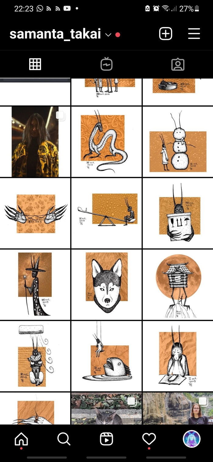 Началось все с зарисовок к инктоберу 2019 года, когда я решила использовать нового персонажа для ежедневных зарисовок