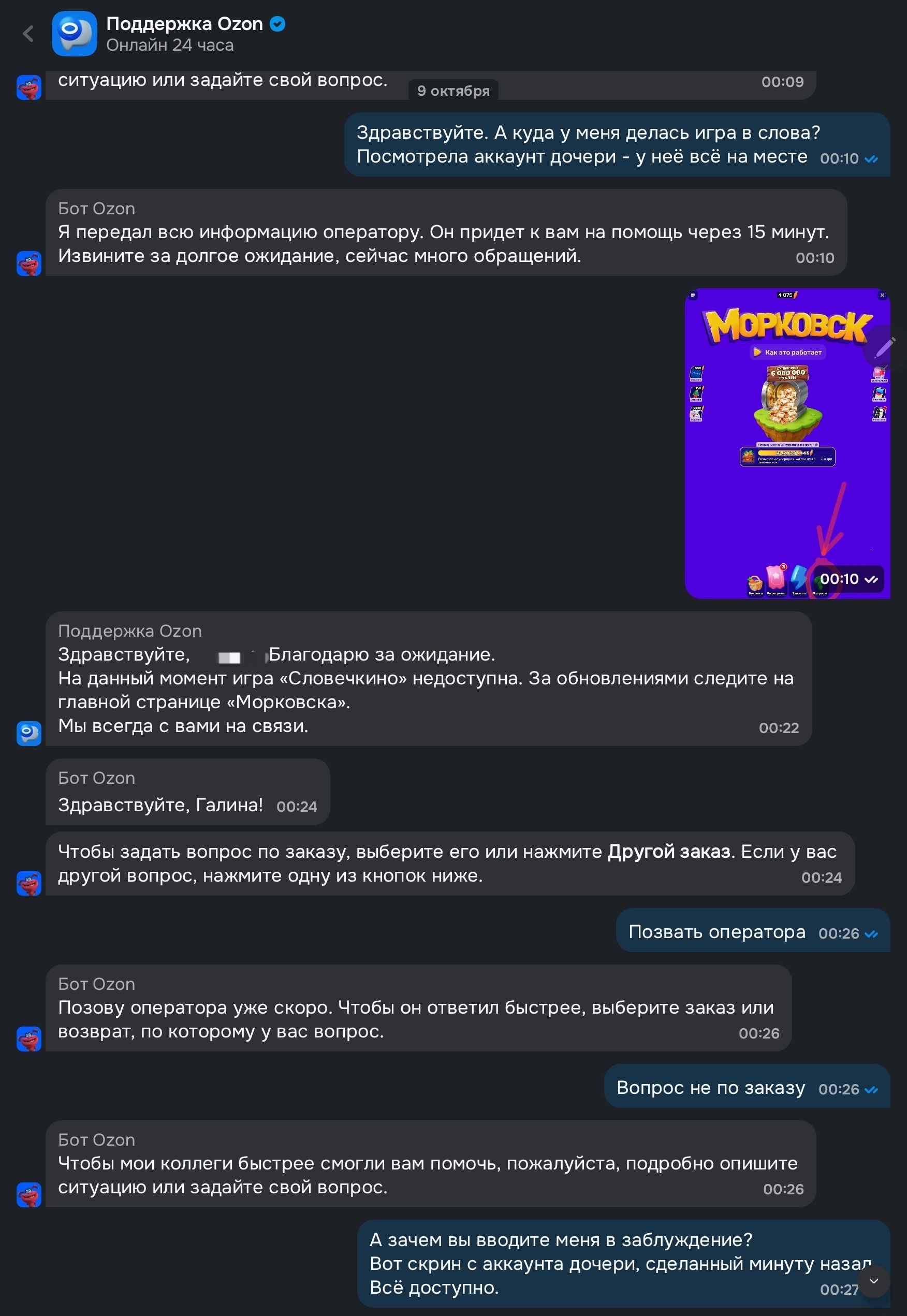Озон, ну это же не из-за того, что вы так тупо решили морковки зажать? Ну признайтесь, что я просто выиграла!