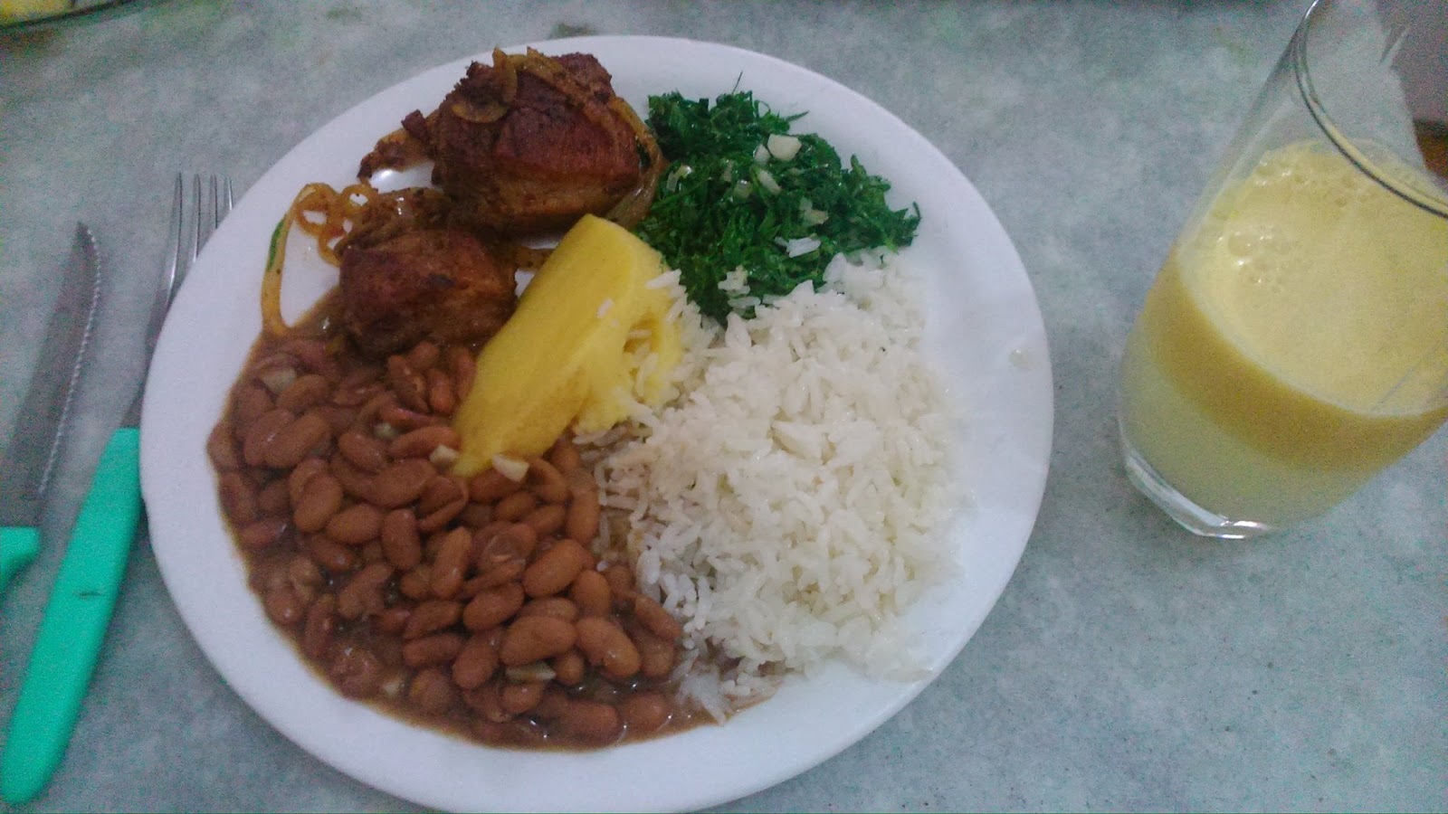 Первое время Ребекка готовила обед и ужин, позже она начала меня учить и мы чередовались. Я научилась готовить рис по-бразильски, фасоль, простенькие салаты. Она же пробовала мою родную еду и от некоторой пришла в восторг (пельмени, голубцы, жаркое, жареная картошка, драники, пирожки), а некоторую не поняла (холодец или тот же борщ).Последнее объясняется тем, что в Бразилии особо супы и не едят. Несмотря на этот кулинарный обмен знаниями, ела я всё-таки больше бразильскую еду. Рис, фасоль, говядина, салат. Рис, фасоль, говядина, салат. Рис, фасоль, говядина, салат. Нет, меня не заклинило.Просто я реально ела это почти каждый день. Порой рис менялся на макароны, но чаще всего шел как дополнение к рису. Да, бразильцы едят частенько рис и макароны вместе. Готовишь картофельное пюре? К ней тоже рис. Без риса никуда. Рис, рис, рис, рис! РИС, МАТЬ ТВОЮ! К концу первого месяца меня уже воротило от риса, при том, что в Украине я была не против поесть его на гарнир раз в неделю. Но не каждый, блин, день.