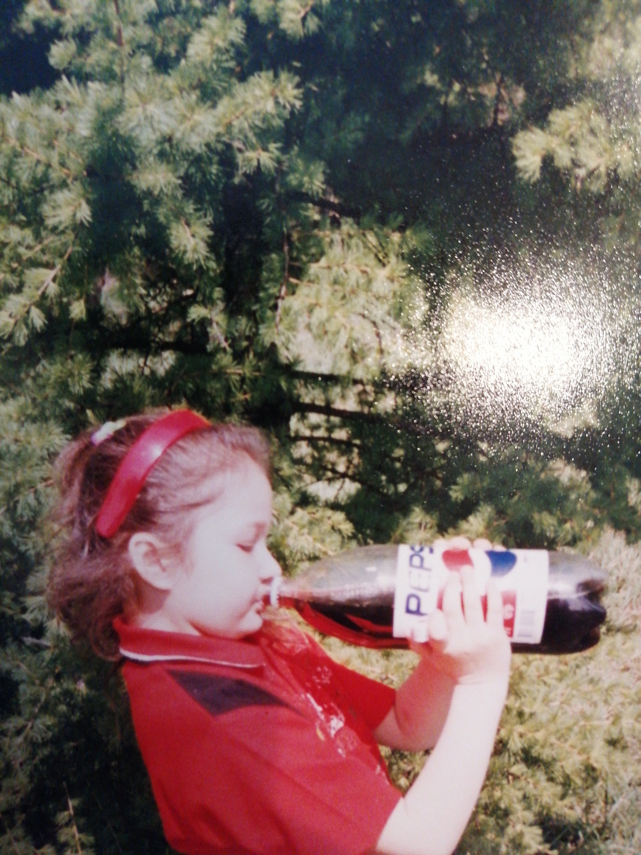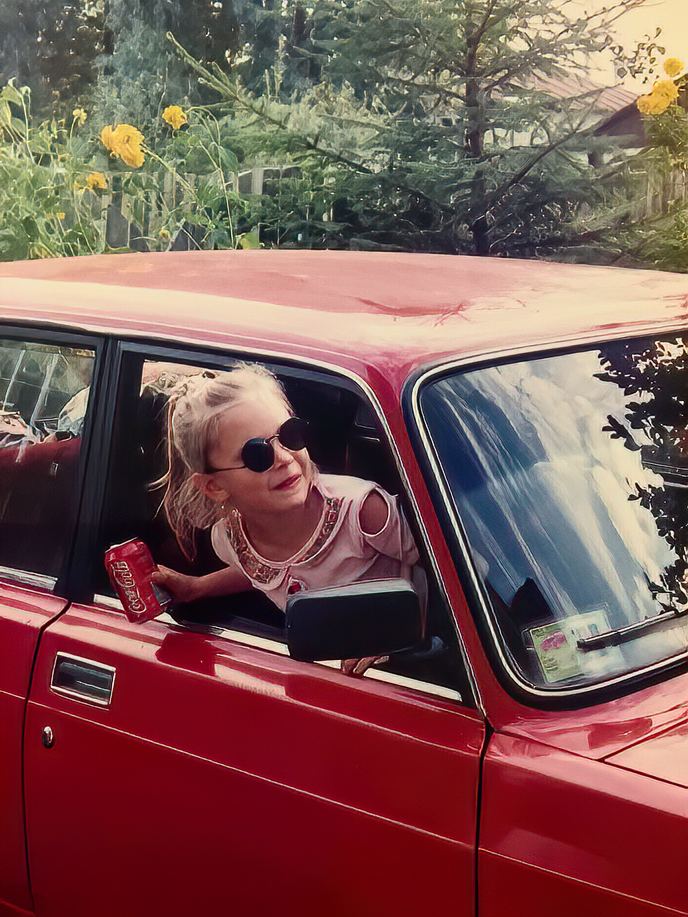 Просто в 98 кока кола в баночке было круто, прэтому и девочка захотела на фото держать баночку в руке.