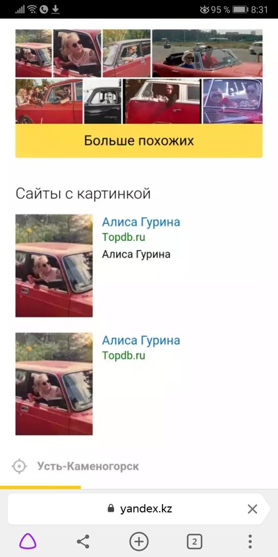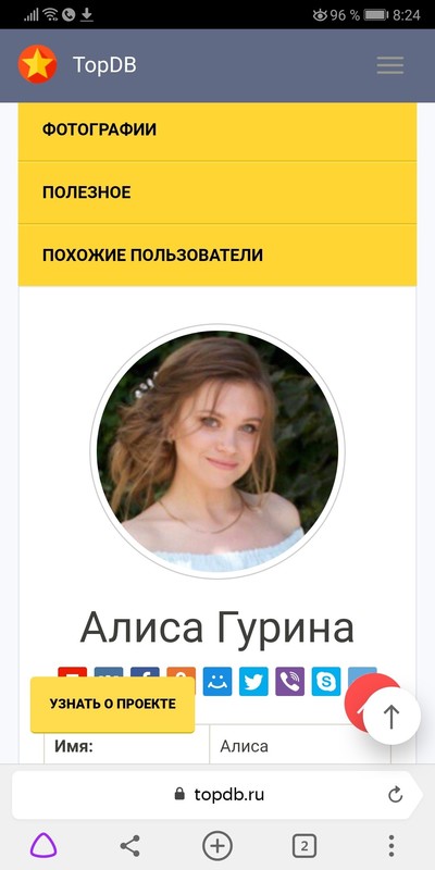 Алиса в результатах тоже была. А инстаграм указан в профиле.