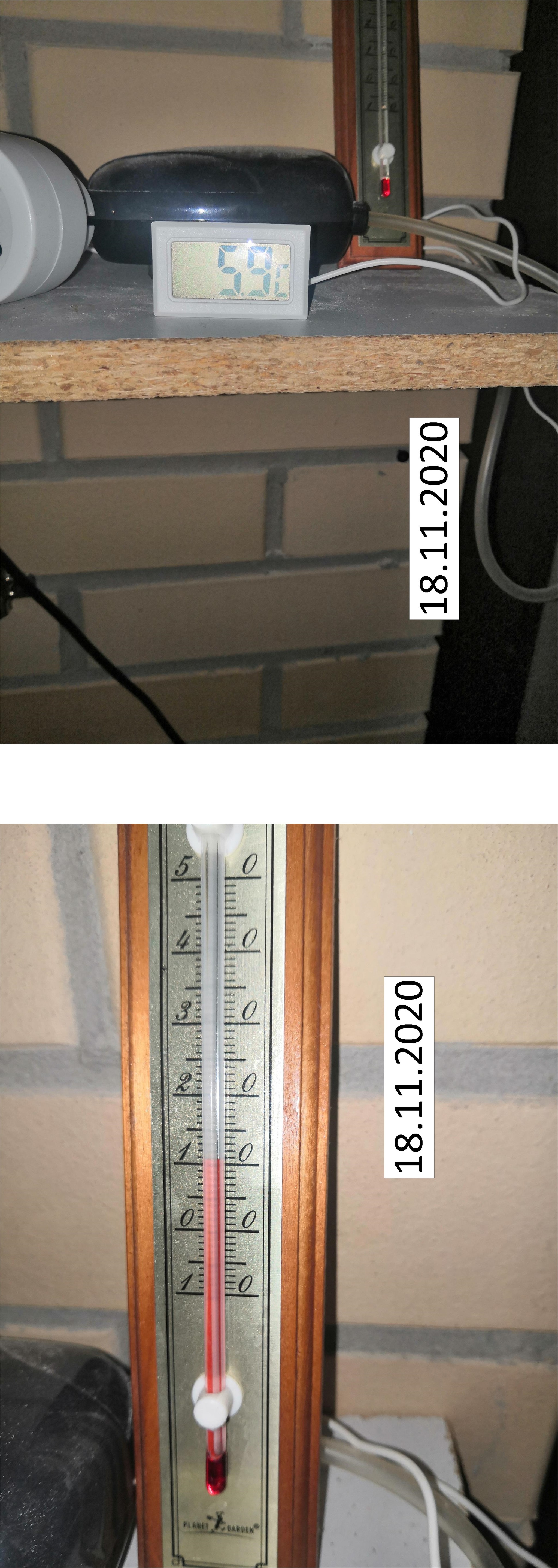 18.11.2020 температура за бортом 4 градуса, температура компота – 5,9 градуса. Обогревателю пришлось переехать к тёще, ей стены оштукатурили машинным способом, влажность большая там он нужнее, а на балконе, с учётом забортной температуры, решил дальнейшее сжигание электричества нецелесообразным.