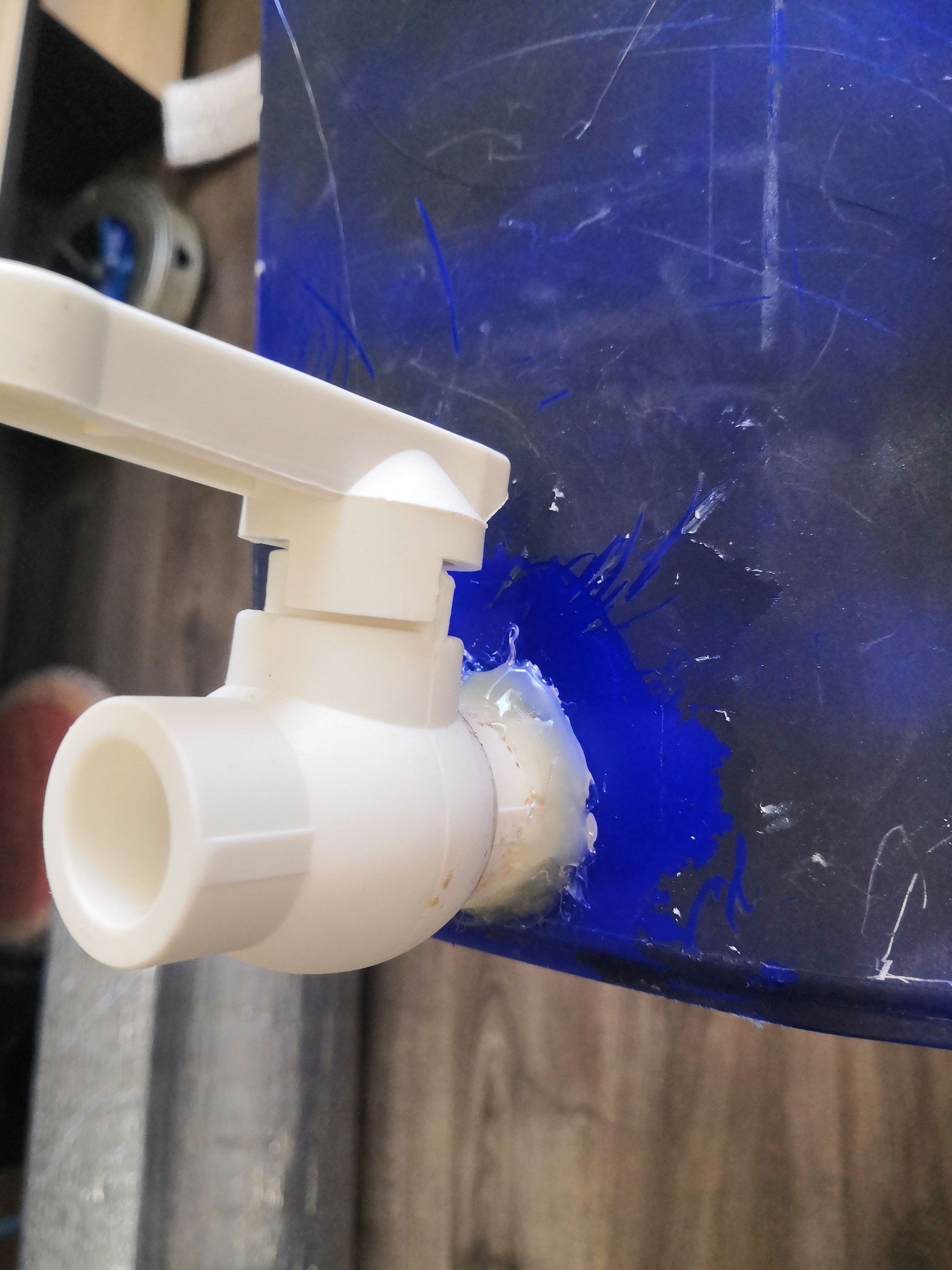 Сливной кран у меня был гидроизолирован герметиком аквариумным, но он, несмотря на толстый слой, со своей задачей справлялся не очень, чуть подтекал. Герметик очень мягкий, и при манипуляциях открыть-закрыть сильно мотыляется туда-сюда, что ещё больше нарушает его. Пришлось прикупить термопистолет и теперь не капает и сидит намертво.